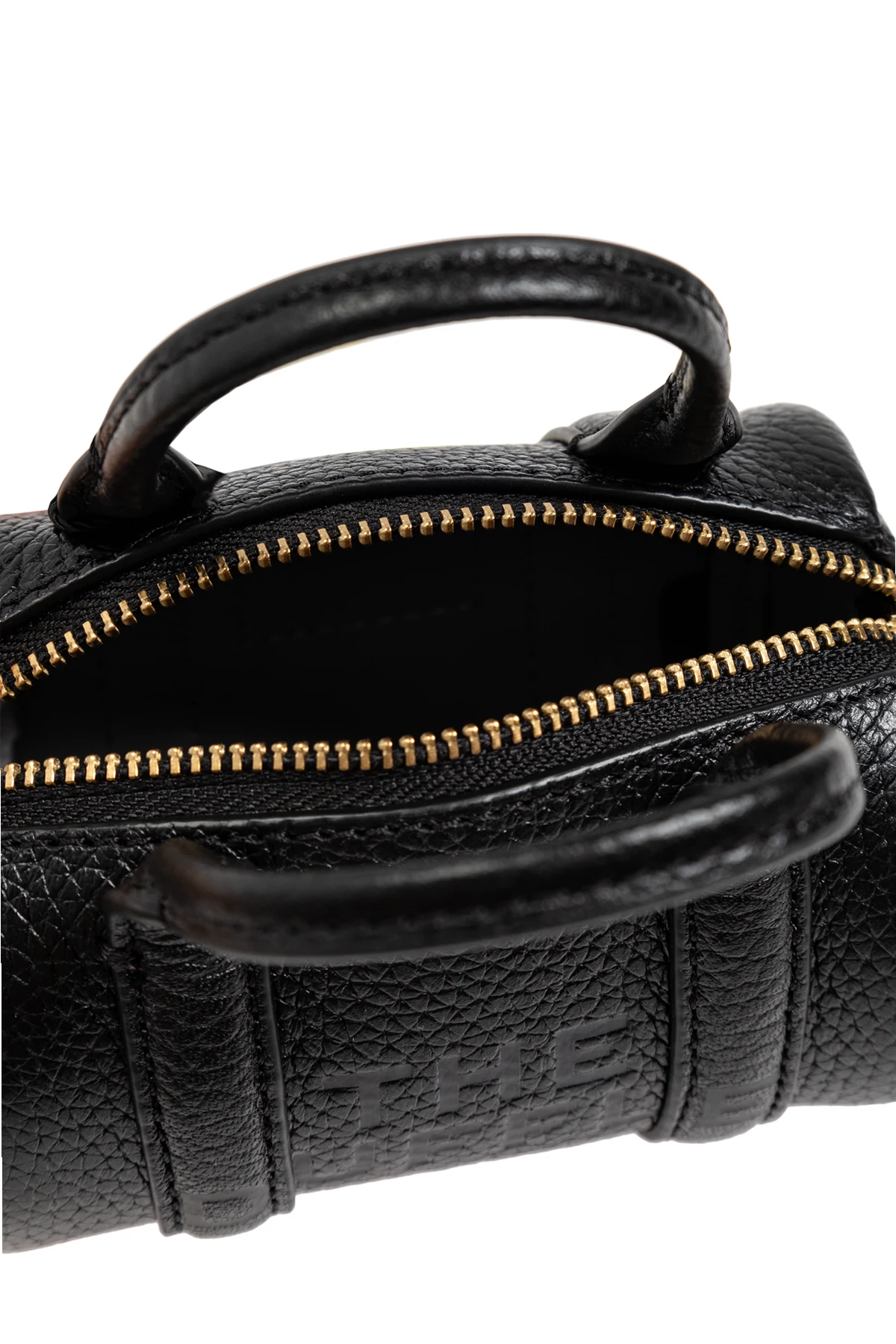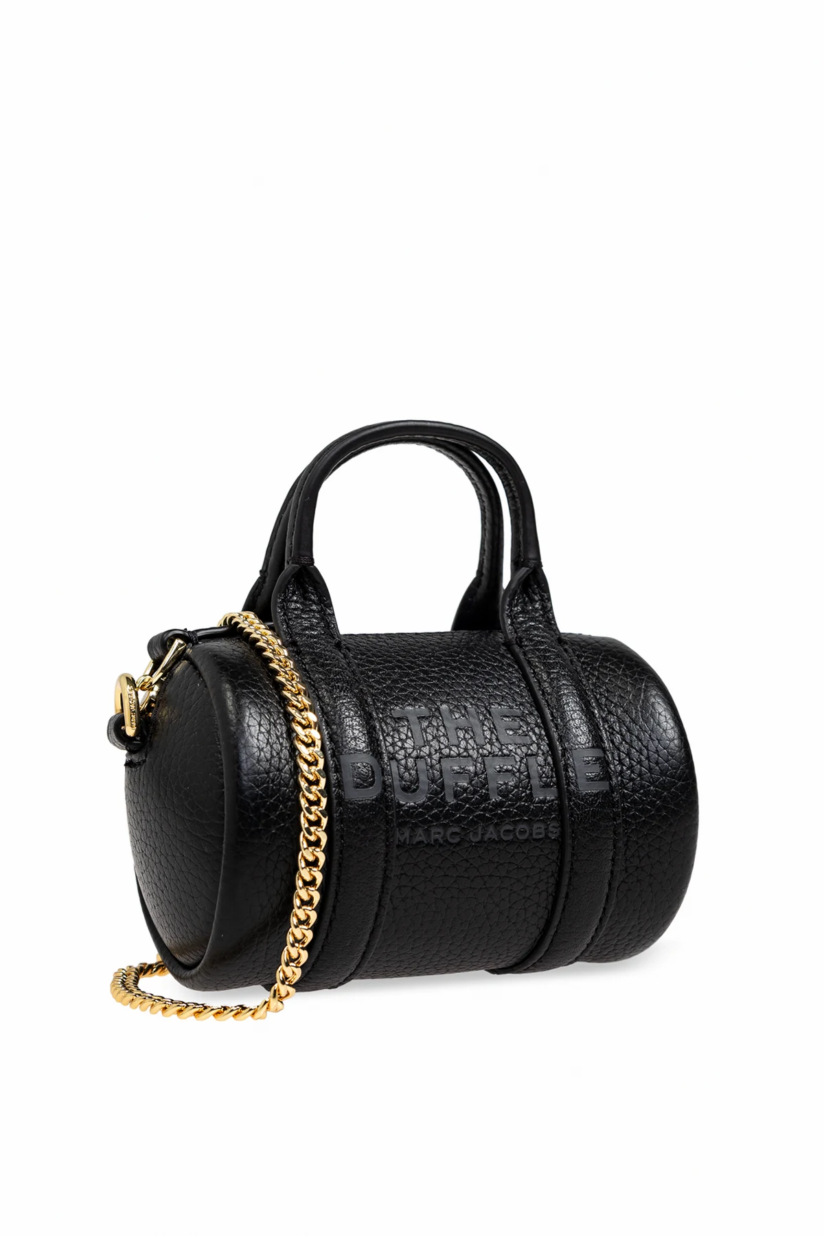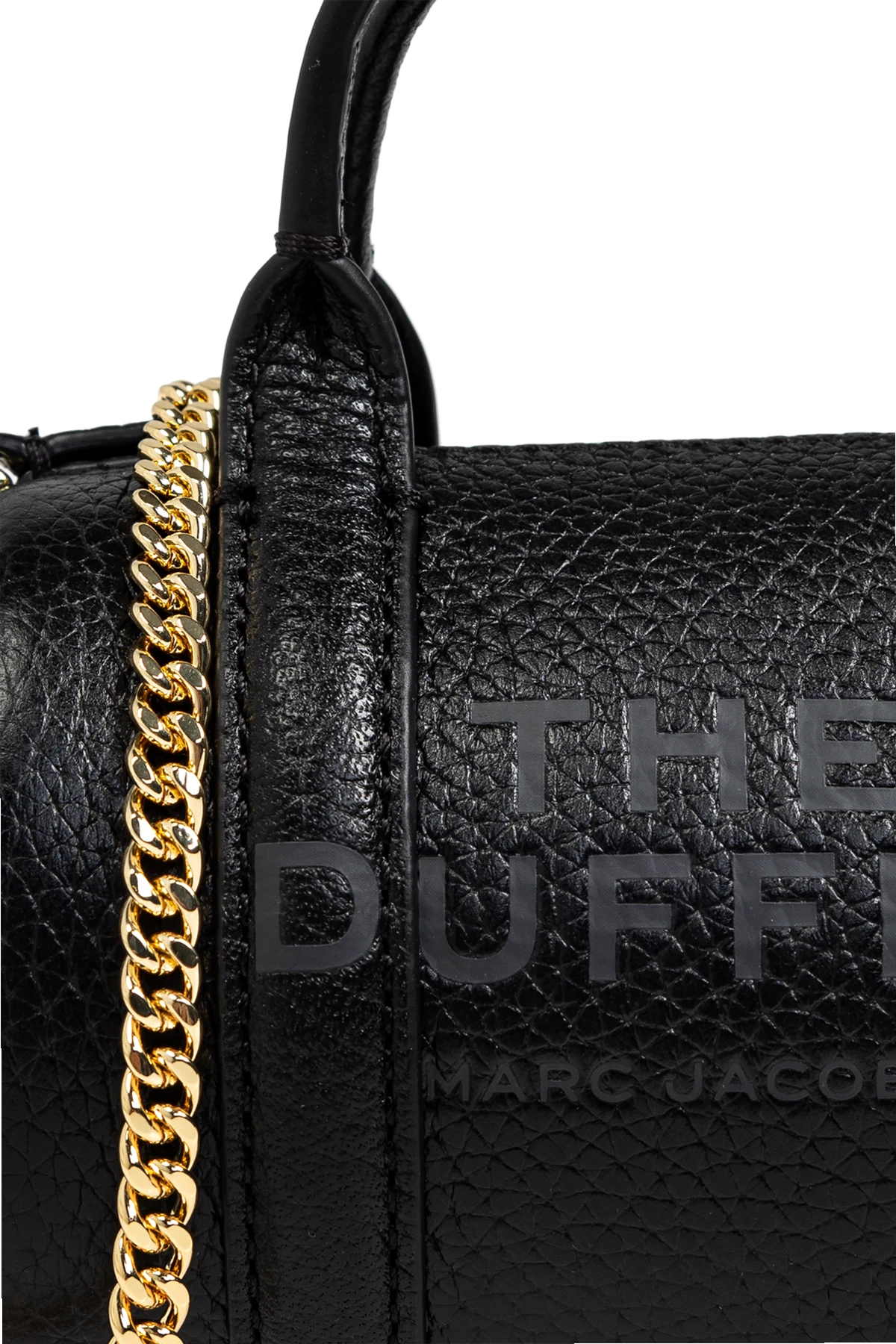 Na przedniej stronie torby widnieje wytłoczony napis 'THE DUFFLE' oraz 'MARC JACOBS' , co podkreśla jej prestiż. Złoty zamek błyskawiczny zapewnia bezpieczne zamykanie, a mała naszywka z logo projektanta z tyłu dodaje subtelnego uroku.