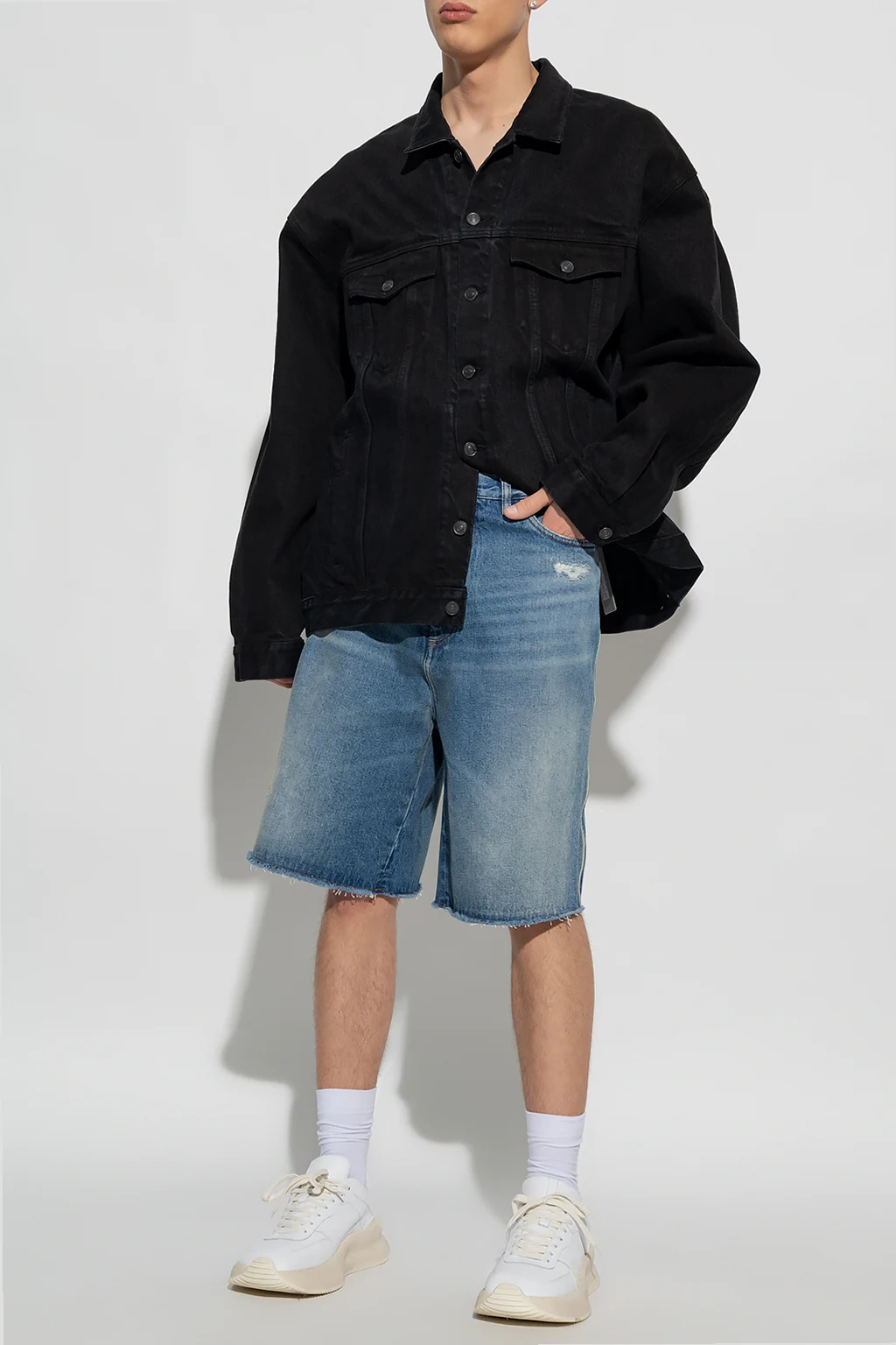 – Jasnoniebieskie szorty jeansowe baggy