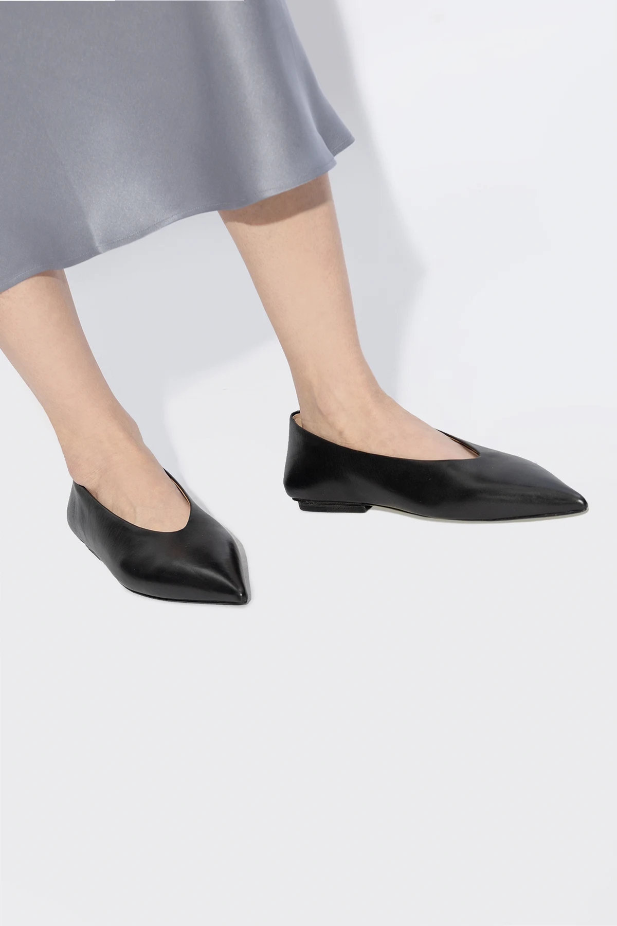 Czarne baleriny Marsell. Wykonane ze skóry. Nosek w szpic. Podeszwa wykonana ze skóry w kolorze czarnym.