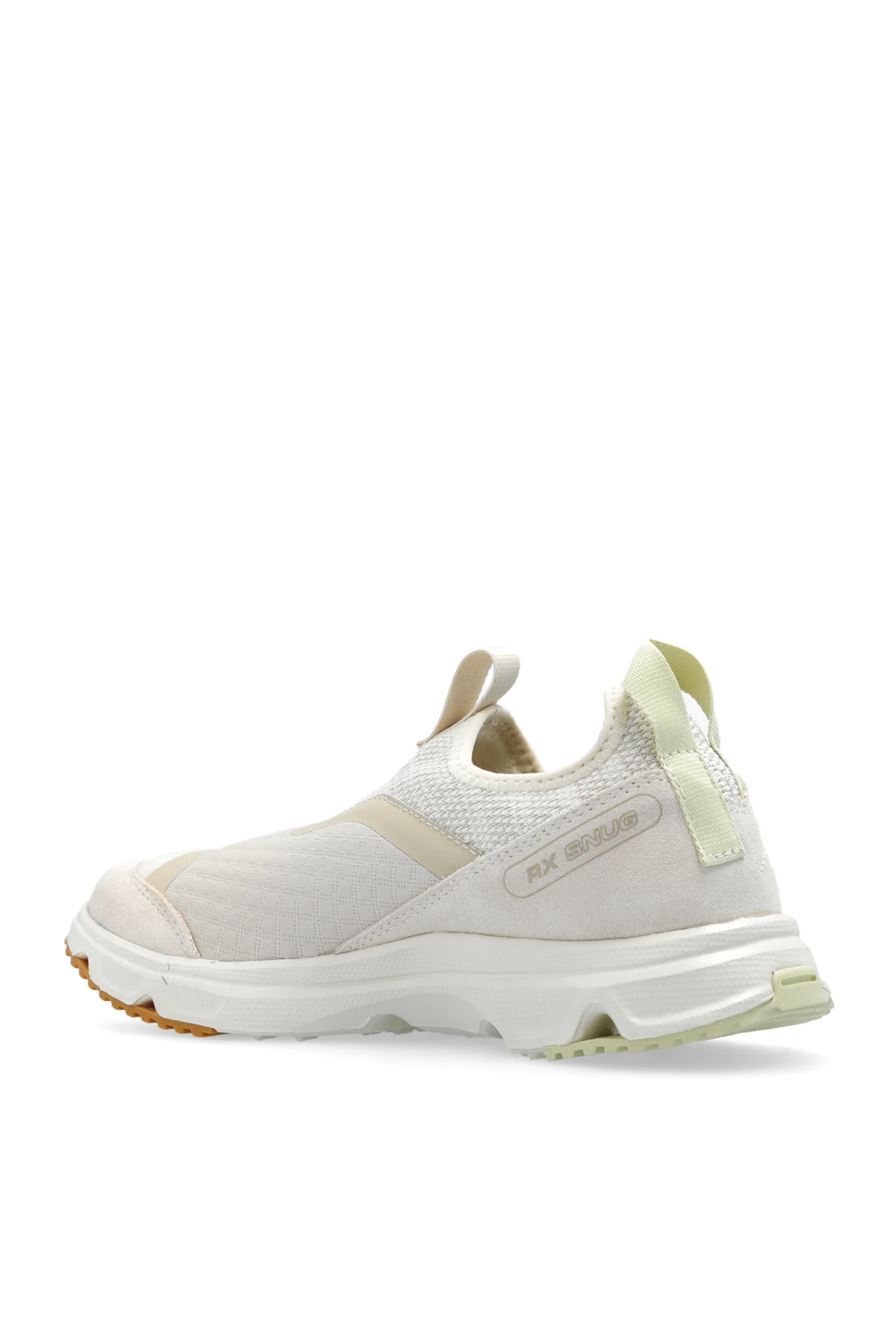 Beżowe, wsuwane buty sportowe, model ‘RX Snug’ Salomon. Wykonane ze skóry, materiału i syntetyku. Ozdobione logo oraz oznaczeniem serii. Beżowa, gumowa podeszwa.