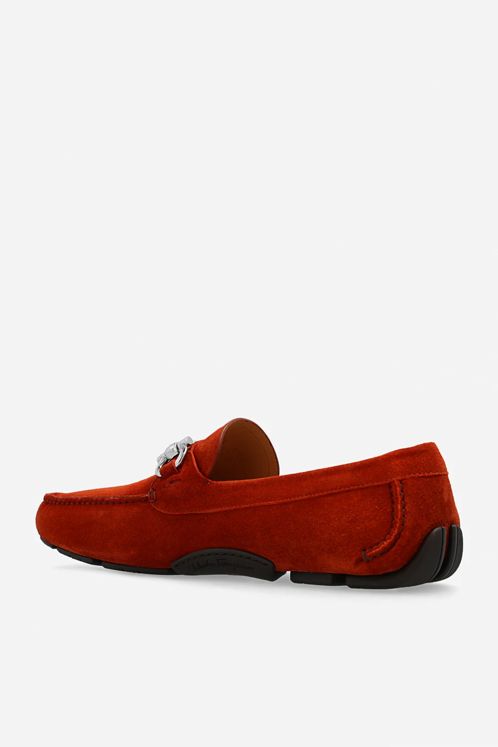 Pomarańczowe mokasyny, model ‘Parigi’ FERRAGAMO. Wykonane ze skóry. Ozdobione charakterystyczną dla marki aplikacją. Gumowa podeszwa.