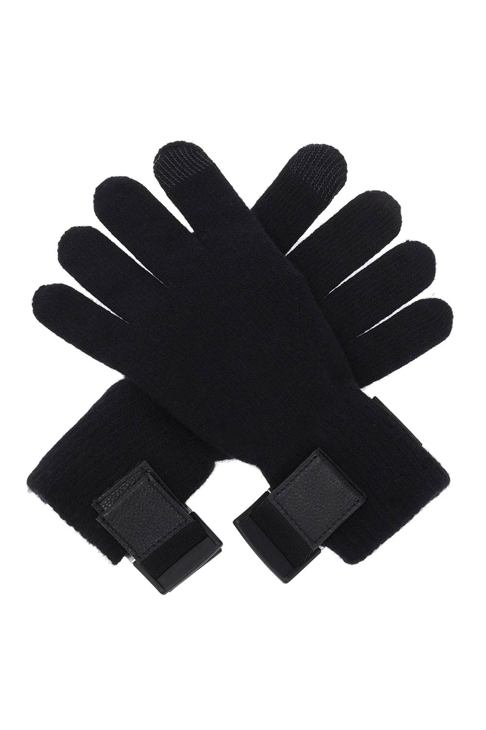 Czarne rękawice Givenchy. Wykonane z mieszanki wełny i kaszmiru. Zakończone ściągaczem ozdobionym pasem z metalową klamrą’4G’ w kolorze srebrnym.