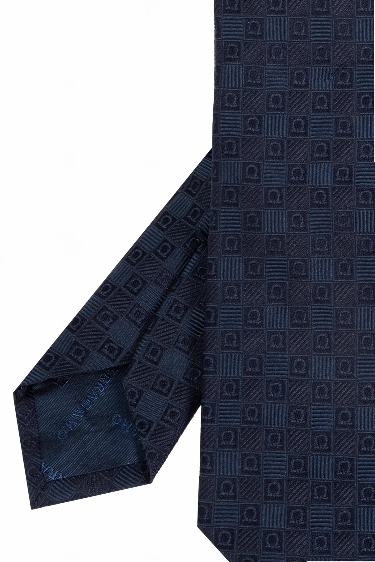 Przedstawiamy Państwu kwintesencję męskiej elegancji – jedwabny krawat z monogramem od prestiżowego projektanta Ferragamo . Jego głęboki, granatowy odcień, połączony z wyszukanym wzorem powtarzalnych monogramów, tworzy kompozycję pełną subtelnego, ale wyrafinowanego uroku. Ekskluzywność tego akcesorium podkreśla materiał, z którego został wykonany – najwyższej jakości, lśniący jedwab, który dodaje każdej kreacji nuty luksusu.