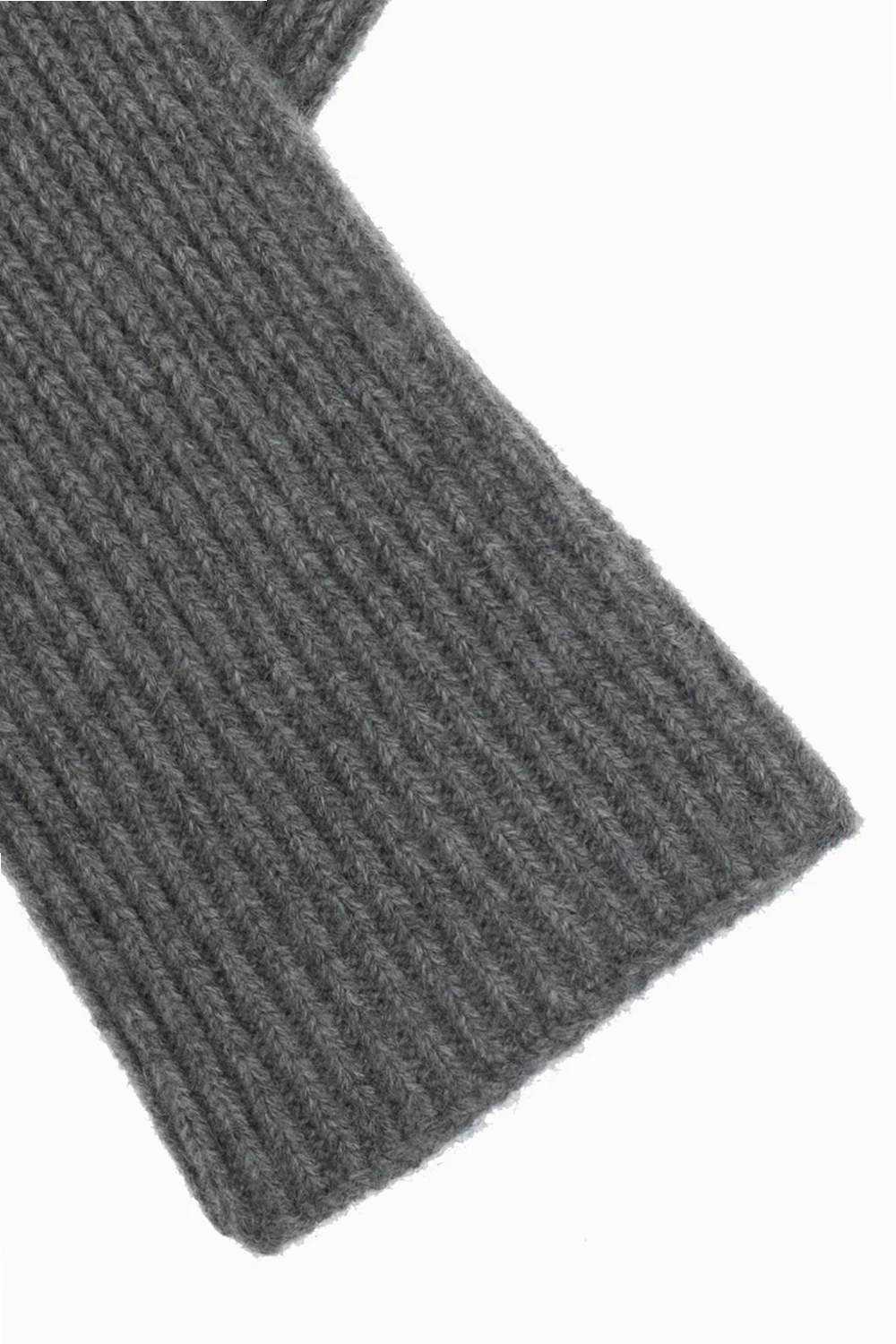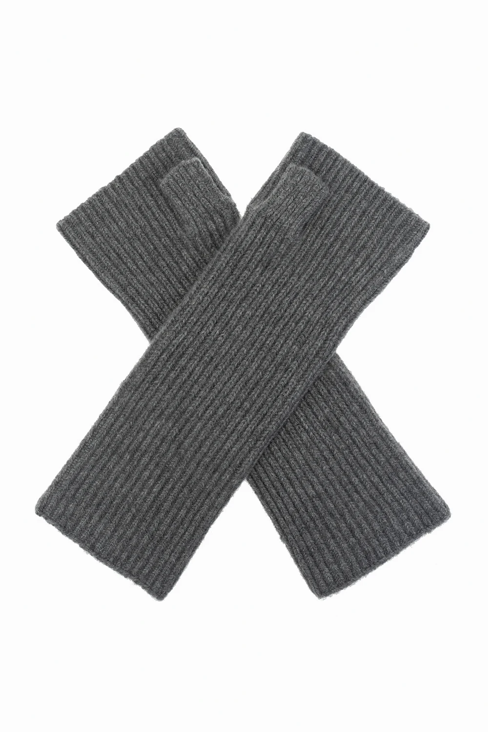 Szare, długie rękawice bez palców Toteme. Wykonane z kaszmirowej, prążkowanej dzianiny.