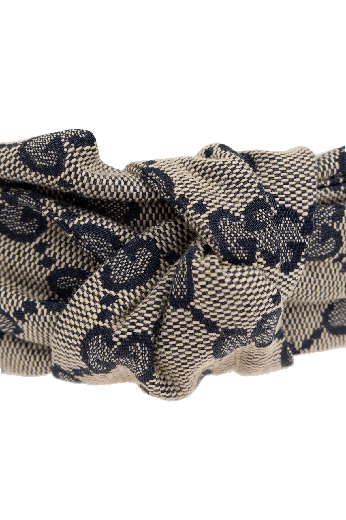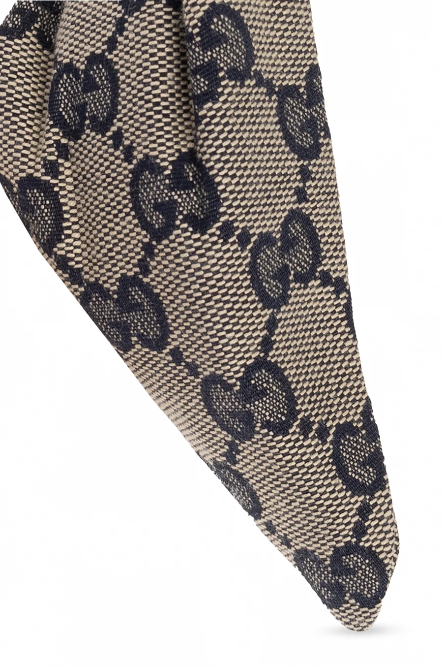 Opaska zdobiona jest charakterystycznym dla marki logo, które tworzy elegancki, powtarzalny motyw na całej powierzchni tkaniny. Stylowy węzeł na górze dodaje jej unikatowego charakteru, podkreślając jednocześnie wyrafinowany styl, z którego słynie linia Gucci Kids .