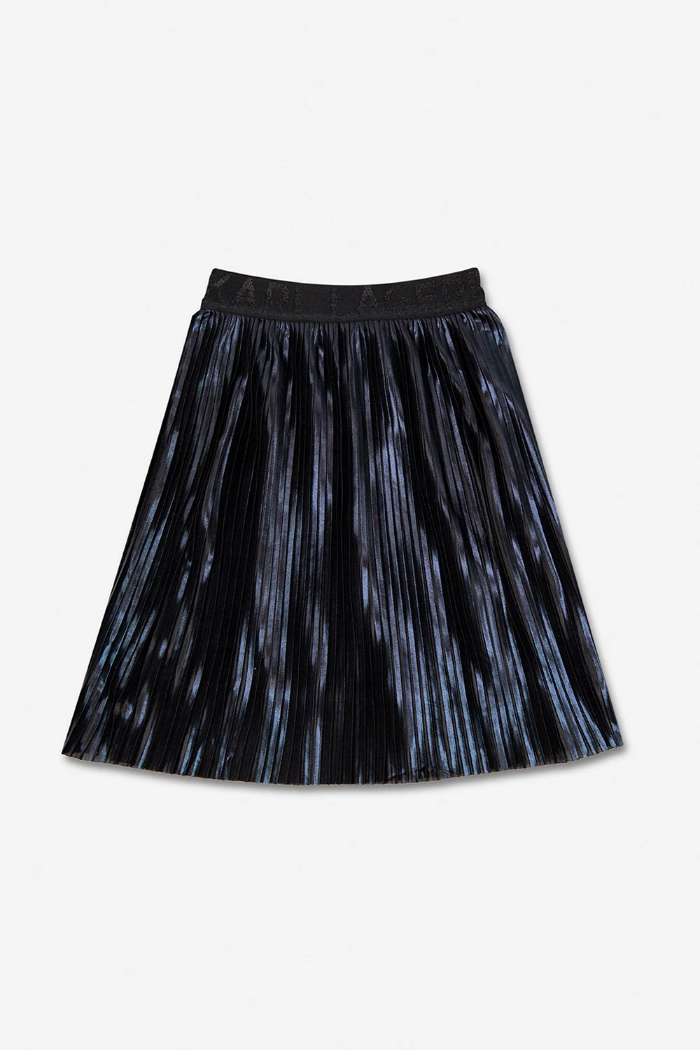 Czarna, plisowana spódnica Karl Lagerfeld Kids. W pasie wszyta guma ozdobiona logo. Rozszerzana ku dołowi.