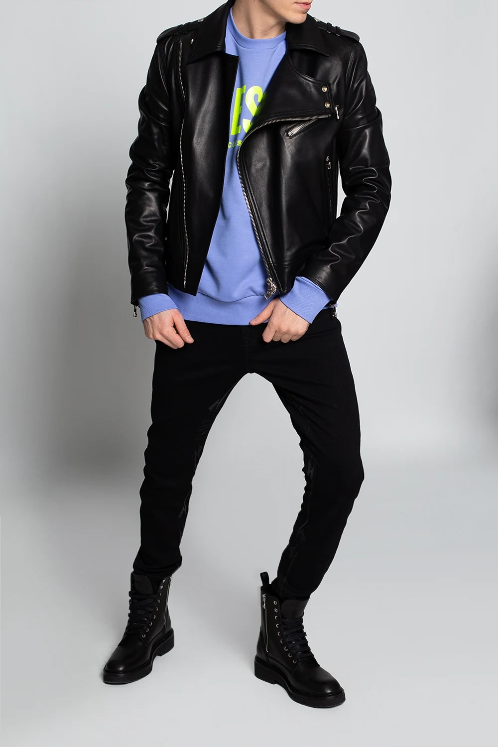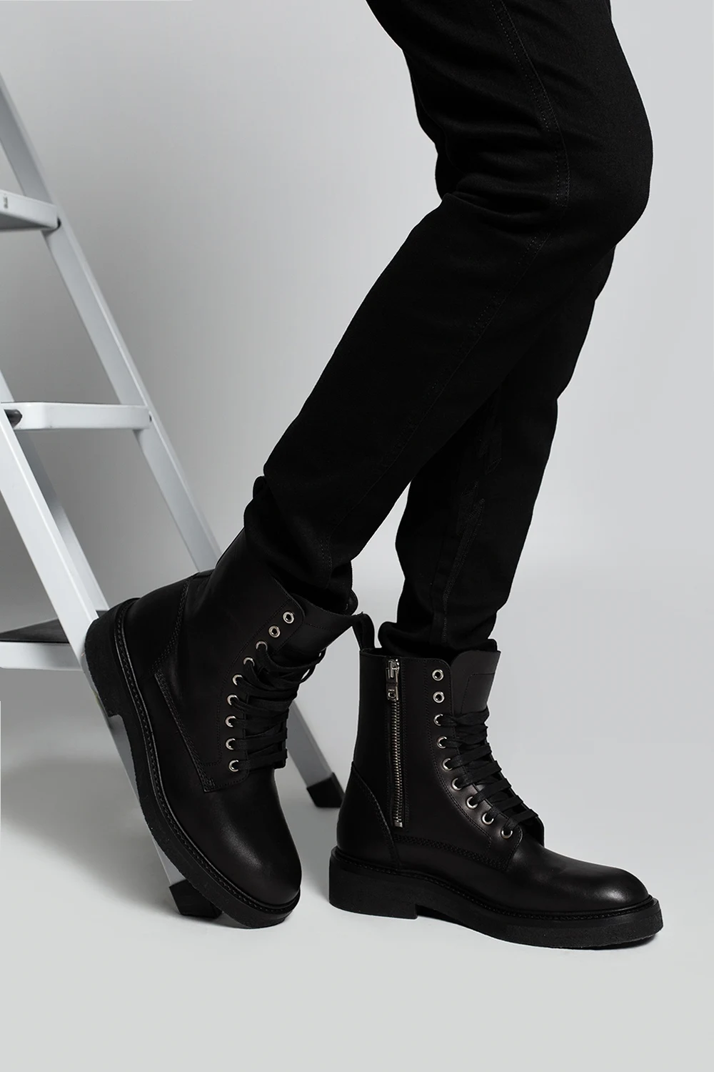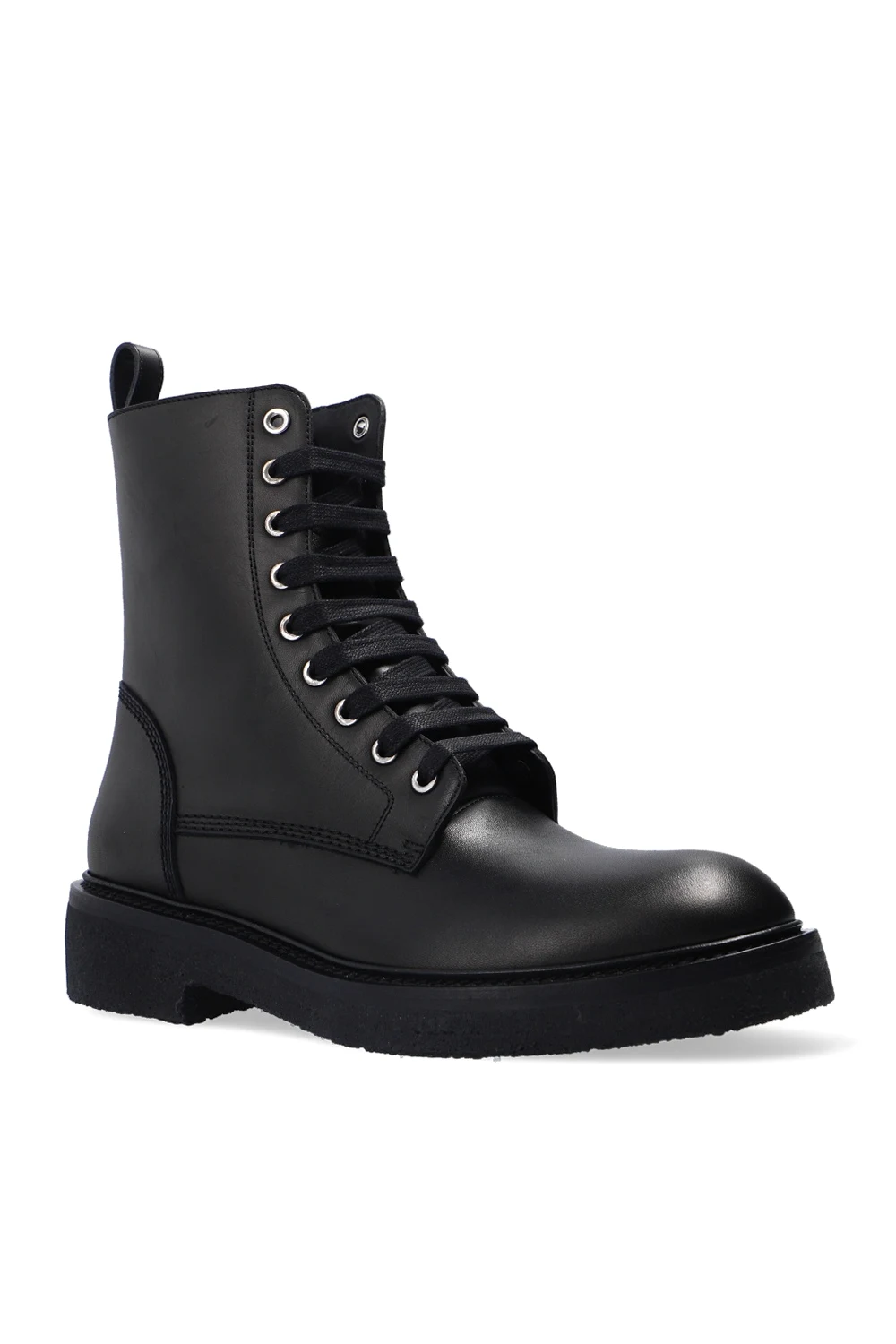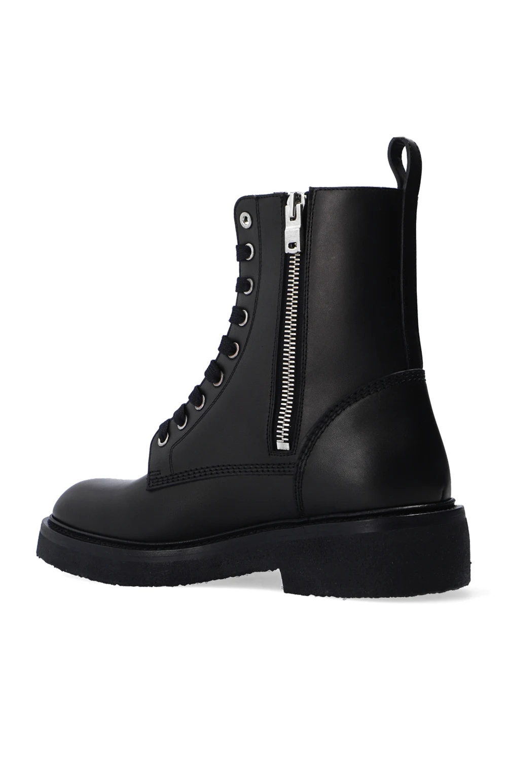 Czarne, skórzane, sznurowane buty Amiri. Z tyłu zapinane na zamek. Ozdobione przeszyciami. Czarna, gumowa podeszwa.