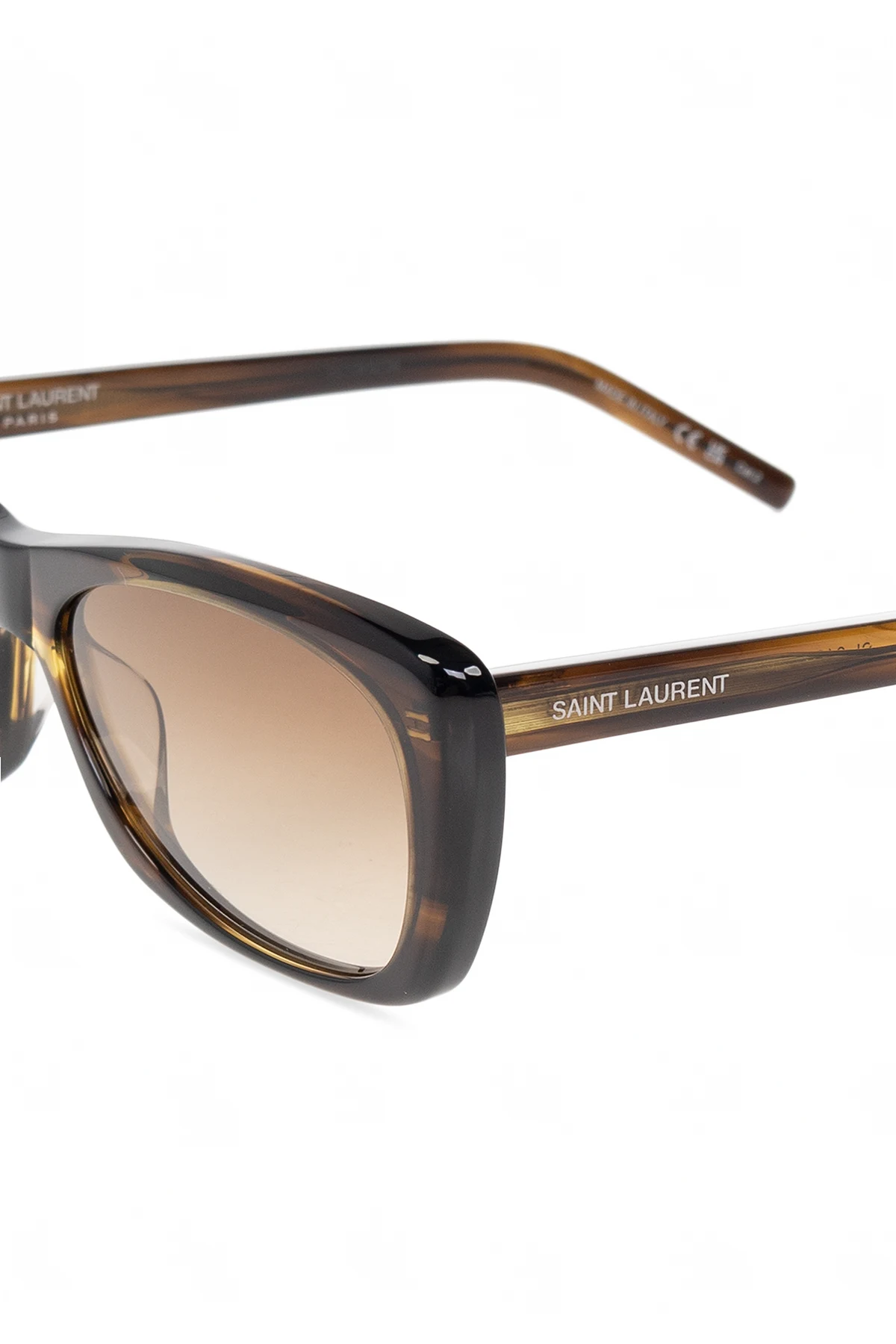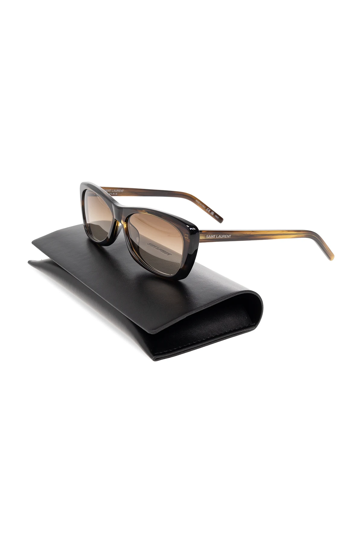 Brązowo-beżowe, gradientowe okulary przeciwsłoneczne, model ‘SL 613’ Saint Laurent. Oprawki ozdobione wygrawerowanym logo. Brązowe, szylkretowe soczewki ze 100% ochroną przed promieniowaniem UV. Dołączone etui.