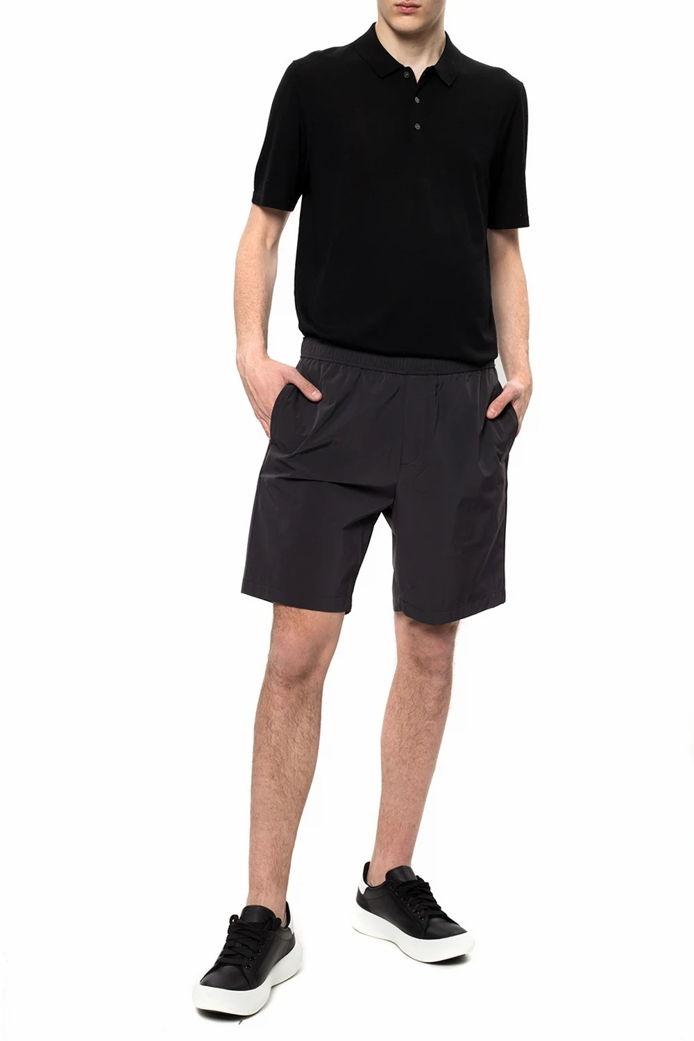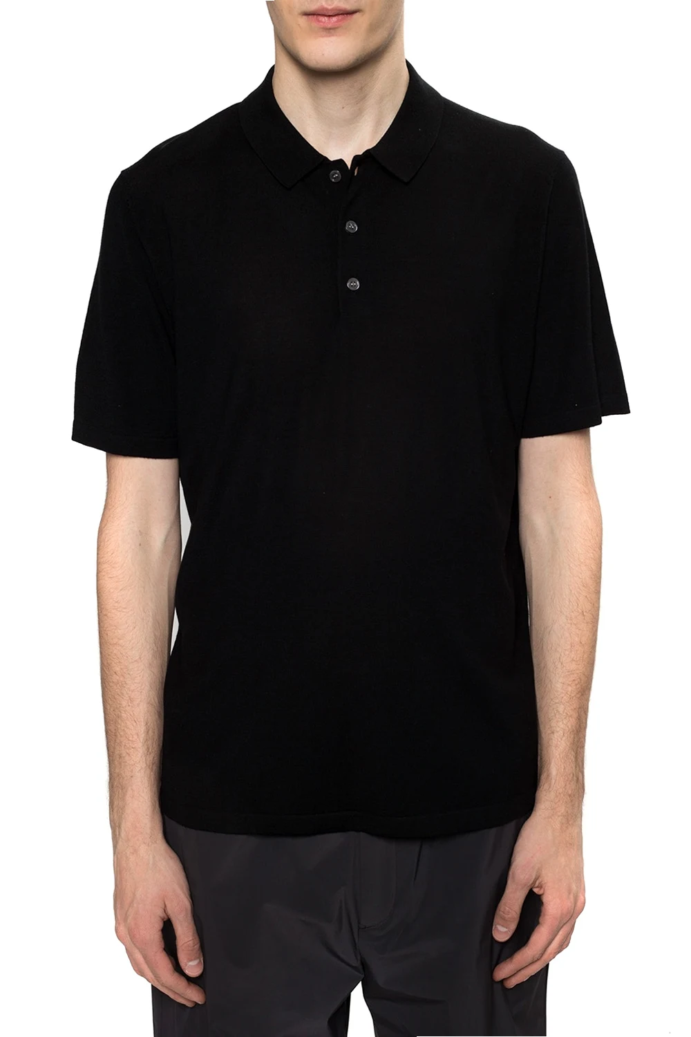Czarne, wełniane polo Theory. Zapinane na trzy guziki.