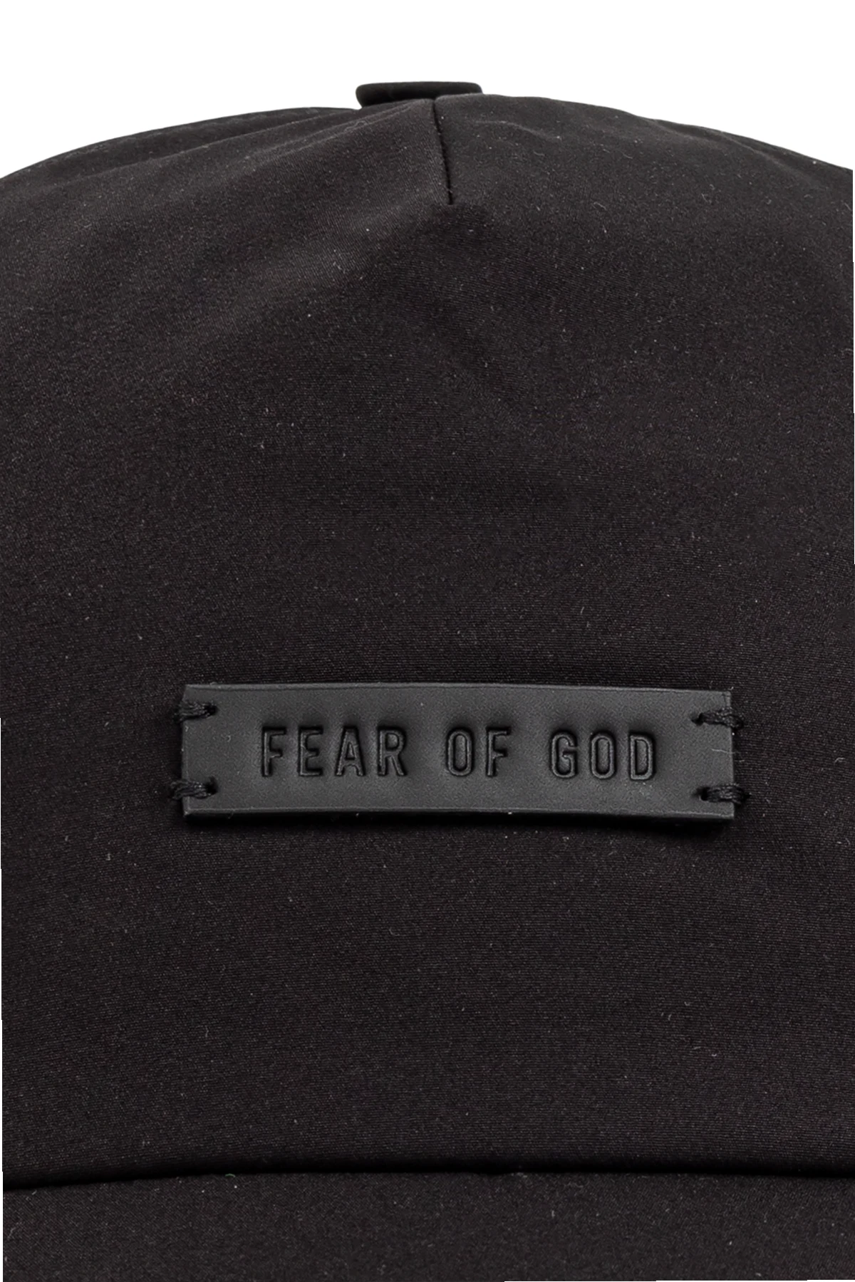 Rozpoznawalne logo marki FEAR OF GOD na przodzie czapki.