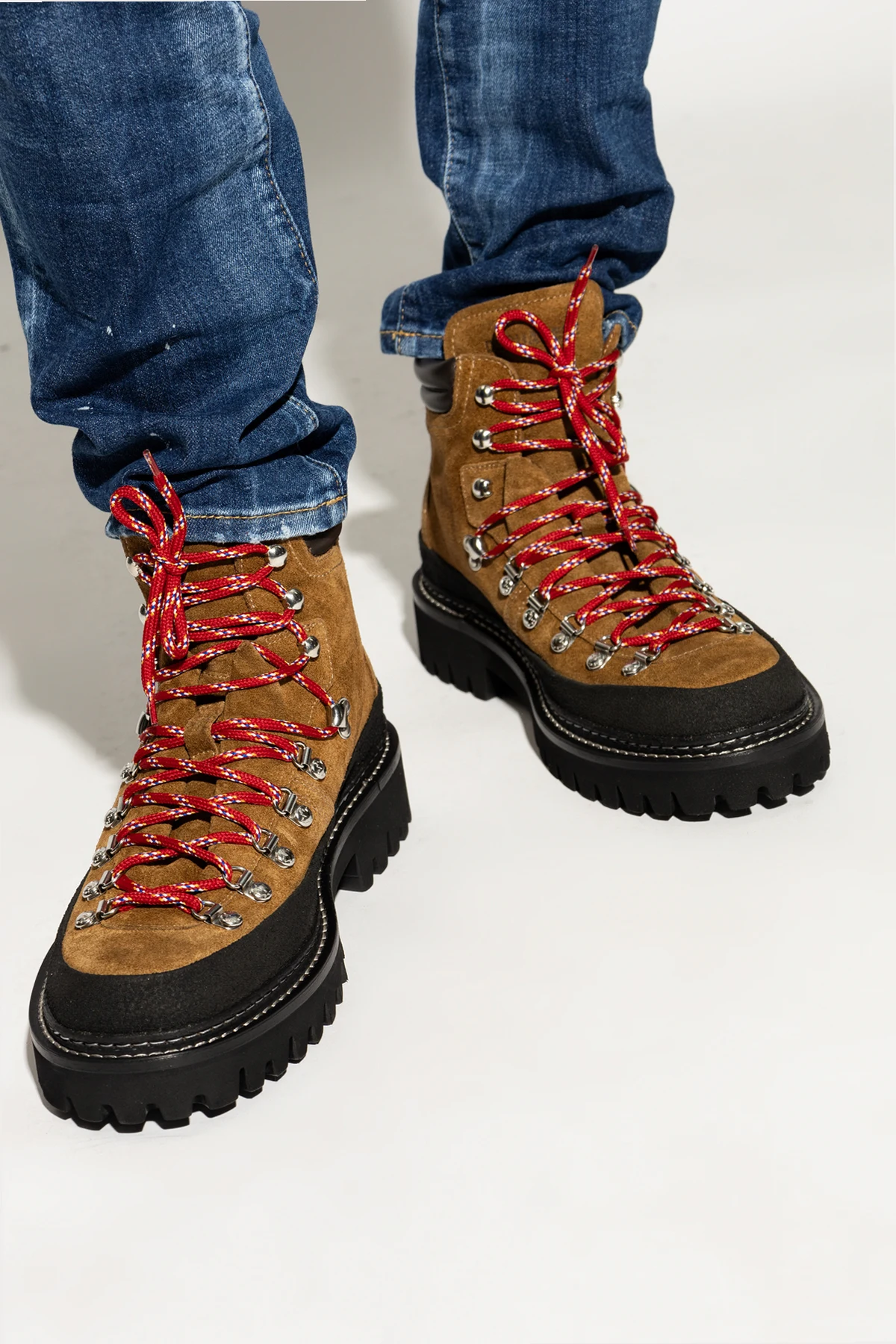 Odkryj elegancję i funkcjonalność w jednym, wybierając Zamszowe buty za kostkę od Dsquared2 . Te ekskluzywne buty trekkingowe, wykonane z najwyższej jakości brązowego zamszu, łączą w sobie luksusowy wygląd z niezrównaną trwałością.