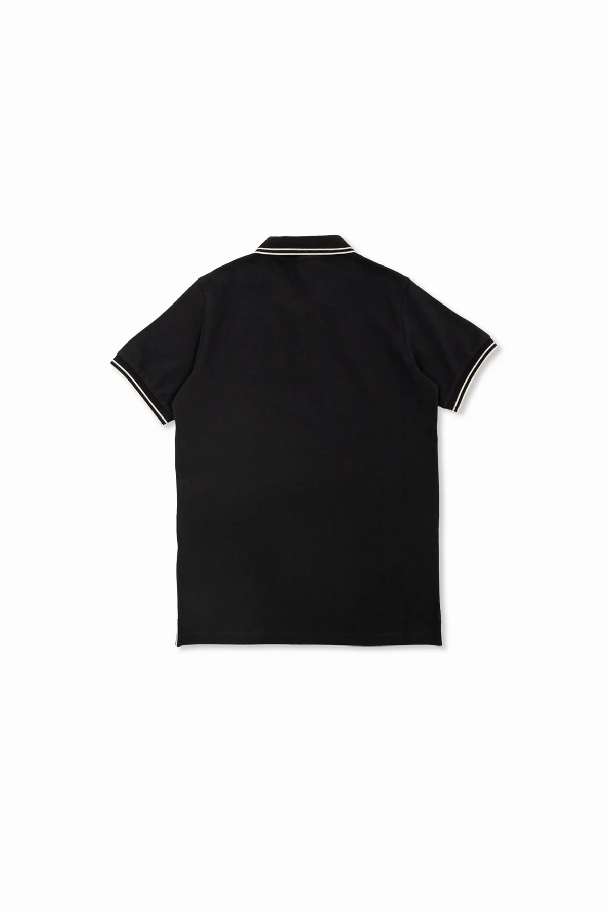 Charakterystycznym elementem, który przykuwa wzrok, jest logo projektanta umieszczone na lewej piersi - czarny kompas otoczony białym i złotym nadrukiem, stanowiący wyrazisty akcent tej eleganckiej koszulki. Dodatkowego uroku dodają kontrastujące białe paski na kołnierzyku i zakończeniach rękawów, a także dwa dyskretne guziki podkreślające klasyczną estetykę tego modelu.