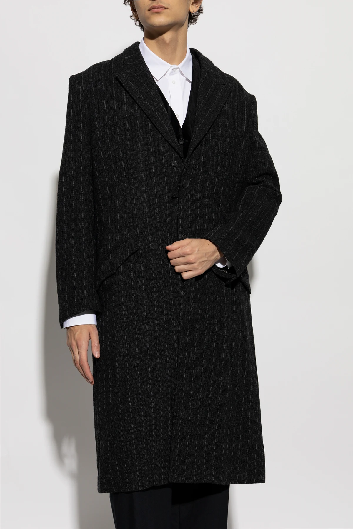 Płaszcz ze wzorem w prążki to wyjątkowy element garderoby, będący kwintesencją elegancji i wyrafinowania. Zaprojektowany przez Yohji Yamamoto , światowej sławy japońskiego projektanta, który słynie z nietuzinkowego podejścia do mody, łączy w sobie klasyczny krój z artystycznym wyrazem.