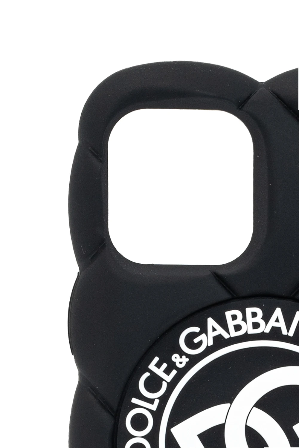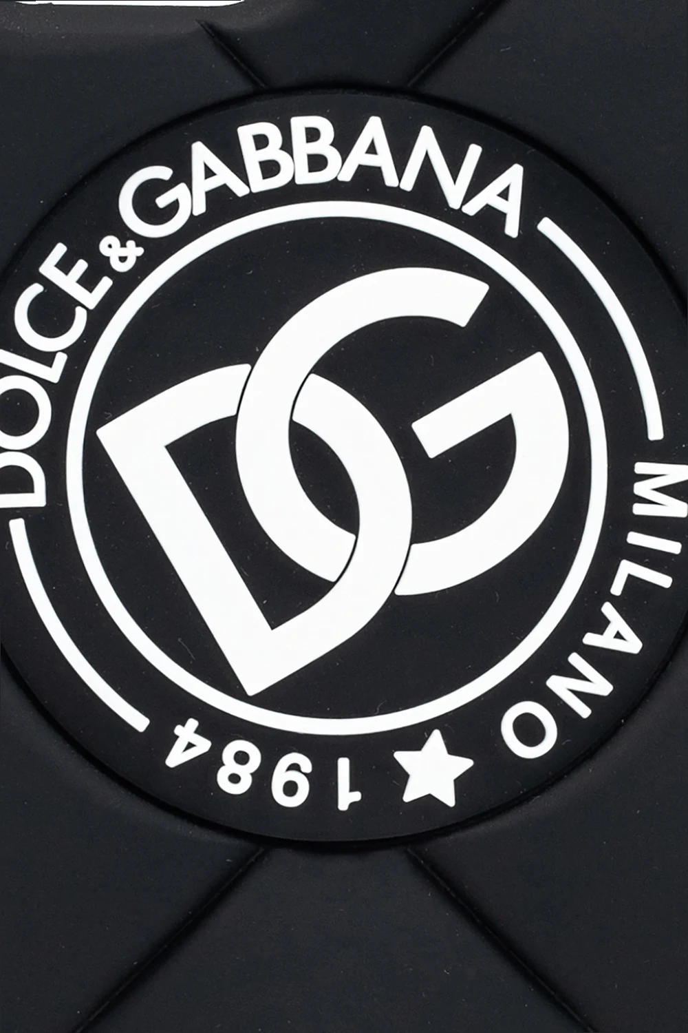 Czarne, pikowane etui na iPhone 12 Pro Dolce & Gabbana. Ozdobione wypukłym logo w kolorze białym.