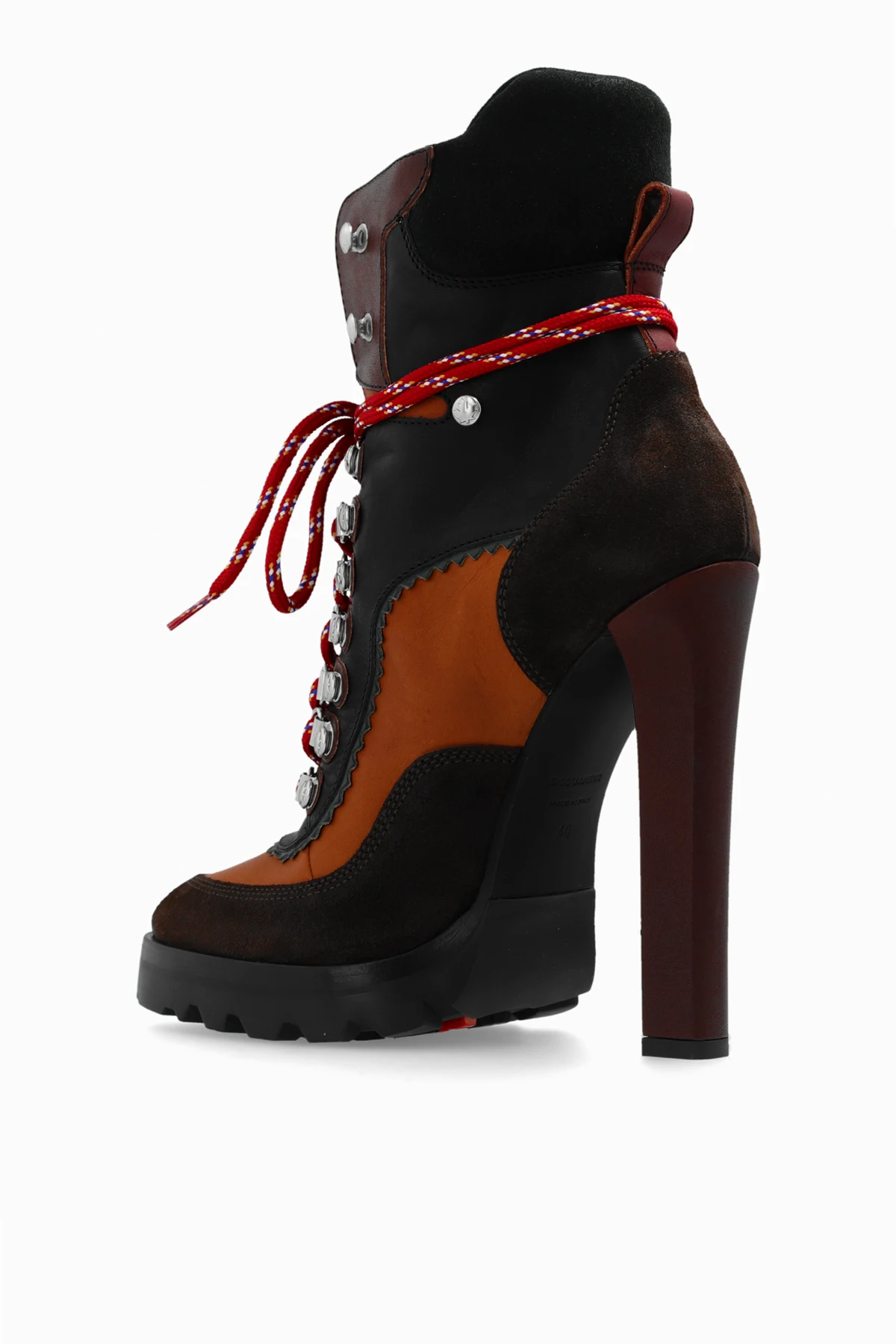 Prezentujemy Państwu kozaki na wysokim obcasie od renomowanej marki Dsquared2 , które z pewnością przyciągną uwagę swoim wyrafinowanym designem i niebanalną kolorystyką. Wykonane z najwyższej jakości skóry , te obuwia są zarówno trwałe, jak i niezwykle stylowe, dzięki połączeniu brązu, czerni oraz ożywczych akcentów czerwieni . Sznurowane przez srebrne, metalowe oczka czerwone sznurówki z wzorem dodają im charakteru i są wyrazistym elementem, który kontrastuje z ciemniejszymi tonacjami buta.