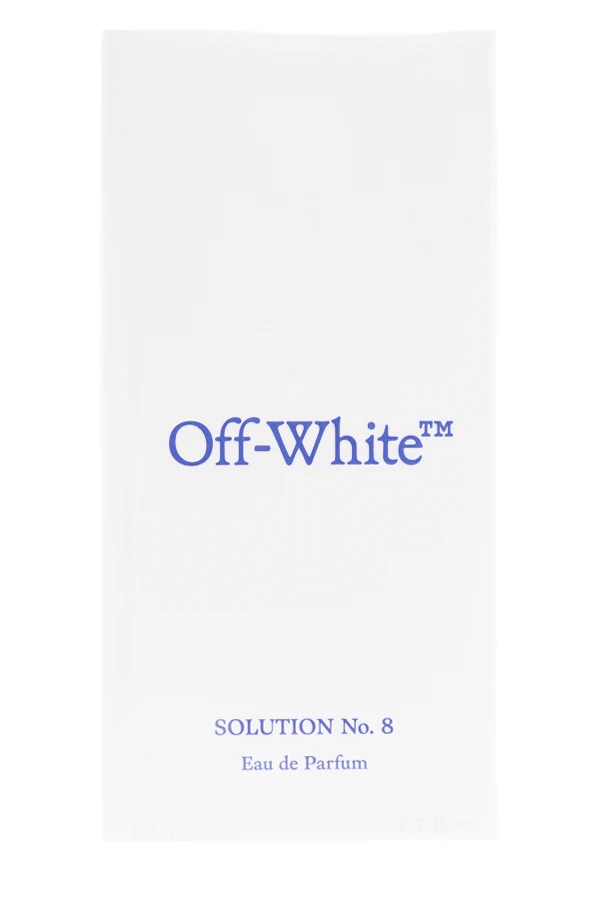 Logo i wyraźna nazwa "Off-White™" oraz "SOLUTION No. 8" uwydatniają jego designer’ski rodowód, oferując pojemność 50 ml czystej esencji dla tych, którzy poszukują nieschematycznych rozwiązań.