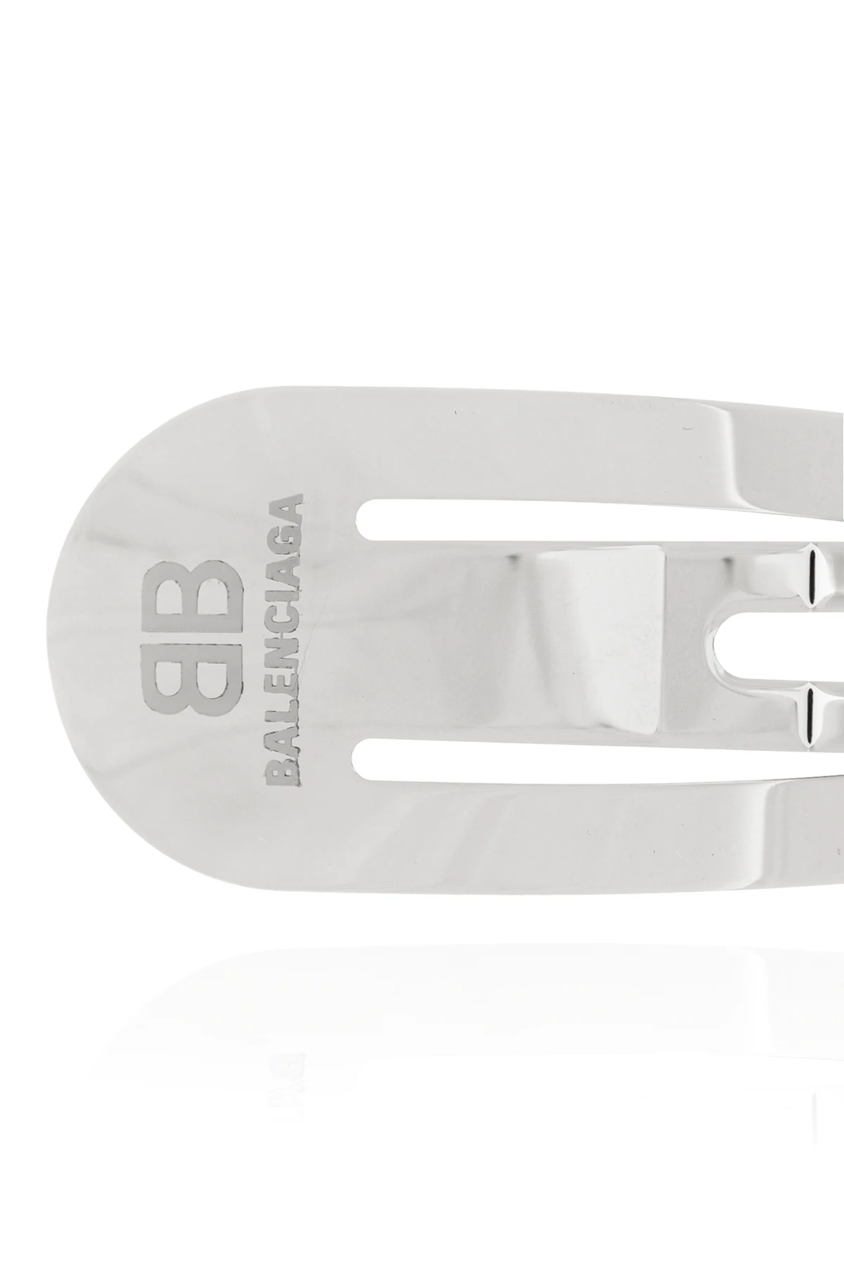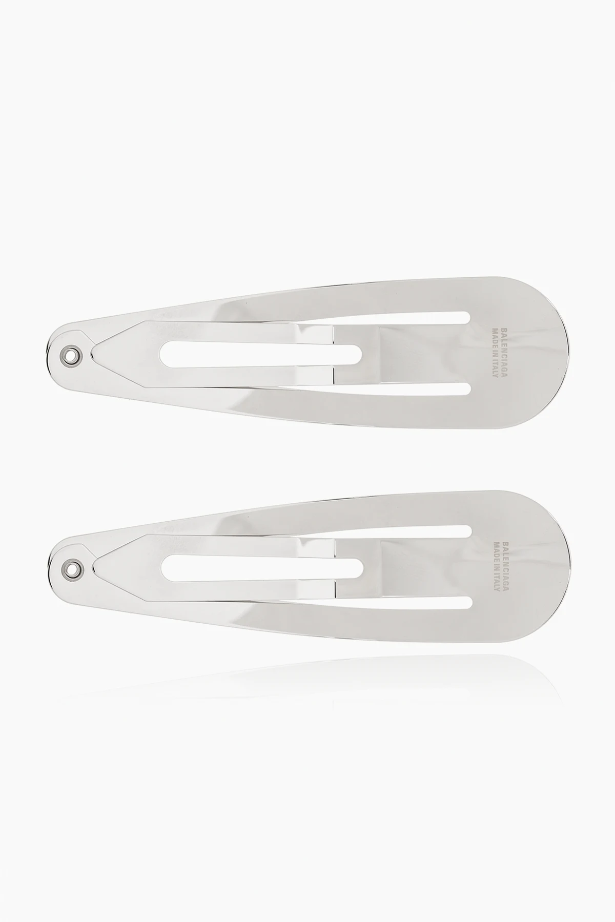 Zestaw dwóch spinek do włosów w kolorze srebrnym Balenciaga. Ozdobione logo.