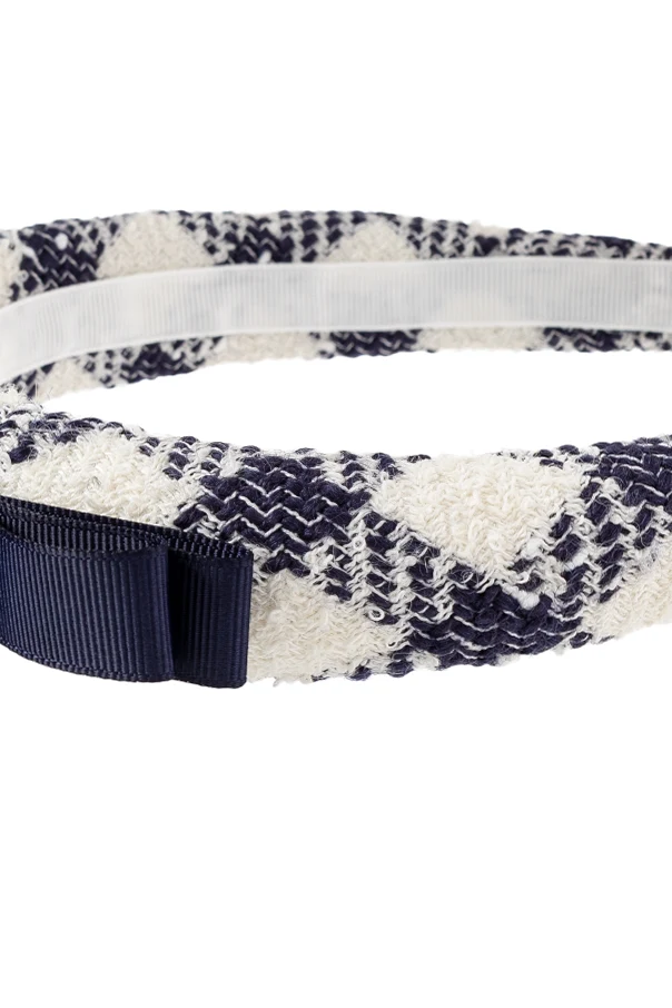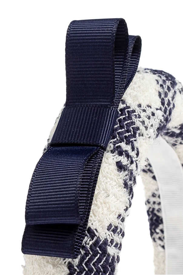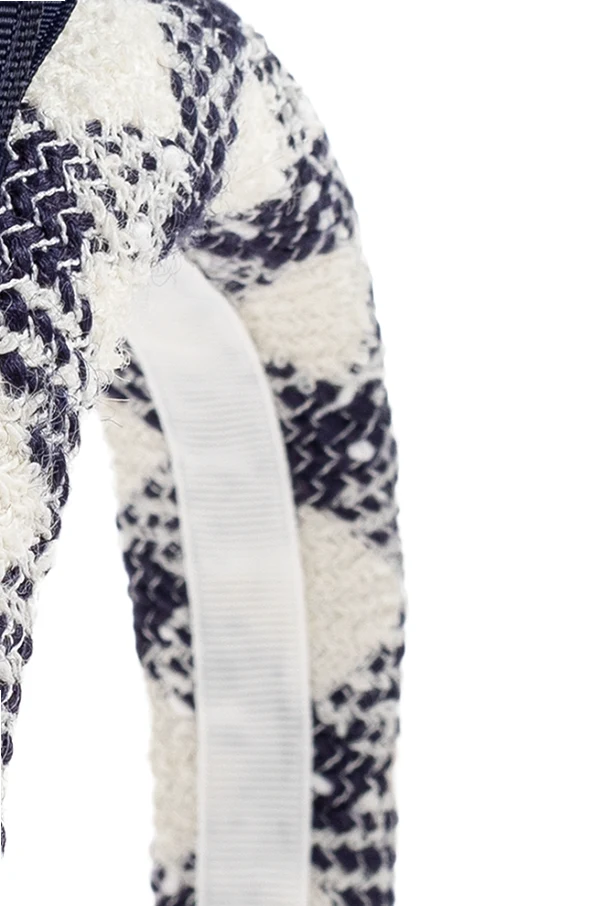 Tweedowa opaska na głowę marki Self-Portrait to kwintesencja wyrafinowanego stylu oraz ponadczasowej elegancji. Wykonana z wysokogatunkowego tweedu, zachwyca fakturą o delikatnym efekcie postrzępienia, co podkreśla jej unikatowy charakter. Regularny, geometryczny wzór w kratę z akcentami w granatowym oraz kremowym odcieniu tworzy harmonijną kompozycję, przyciągając wzrok subtelną klasyką.