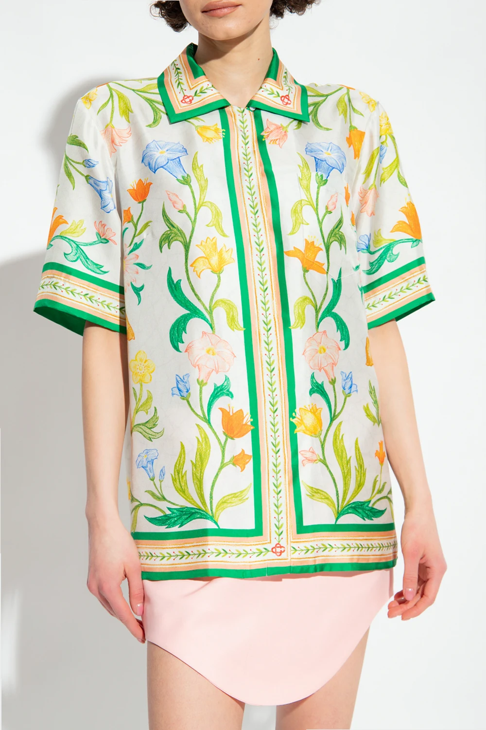 Kolorowa koszula, model 'L'arche Fleurie' Casablanca. Wykonana z jedwabiu. Ozdobiona wzorem. Krótkie rękawy.