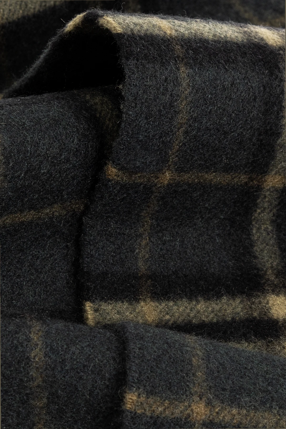 Jego prostokątny kształt oraz frędzle na końcach sprawiają, że jest niezwykle stylowy. Klasyczny wzór w kratę, składający się z ciemnozielonych, czarnych oraz beżowych linii, dodaje mu wyrafinowanego charakteru. Stonowane kolory czynią go wszechstronnym dodatkiem, idealnym zarówno dla kobiet, jak i mężczyzn, do różnych stylizacji.