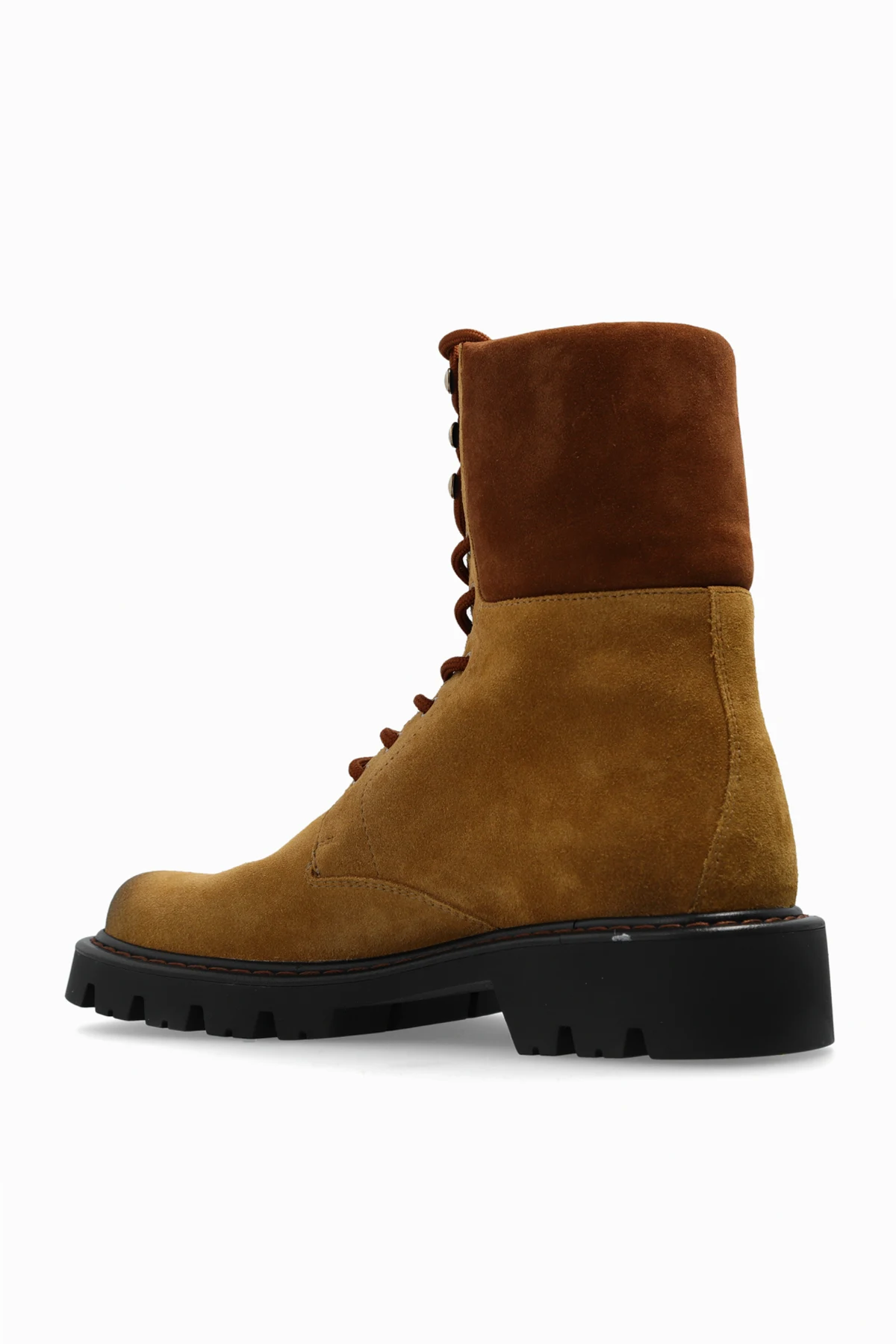 Przedstawiamy sznurowane buty za kostkę "Sierra" od renomowanej marki Loewe . Te eleganckie buty damskie, wykonane z najwyższej jakości zamszu, stanowią doskonałe połączenie klasycznego stylu i nowoczesnego designu.