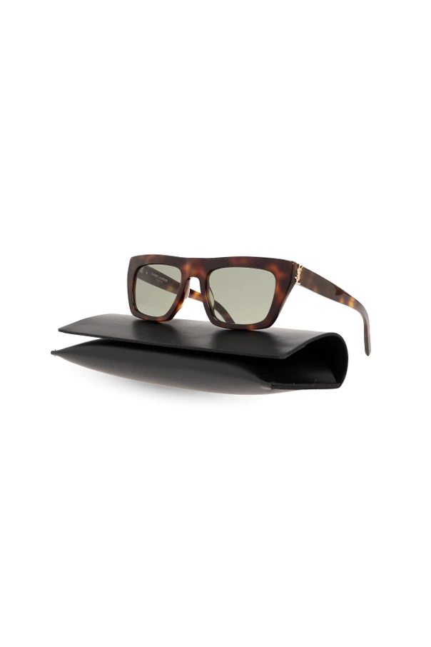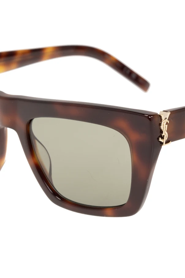 Ekskluzywne detale, takie jak logo marki Saint Laurent, podkreślają unikatowy charakter okularów.