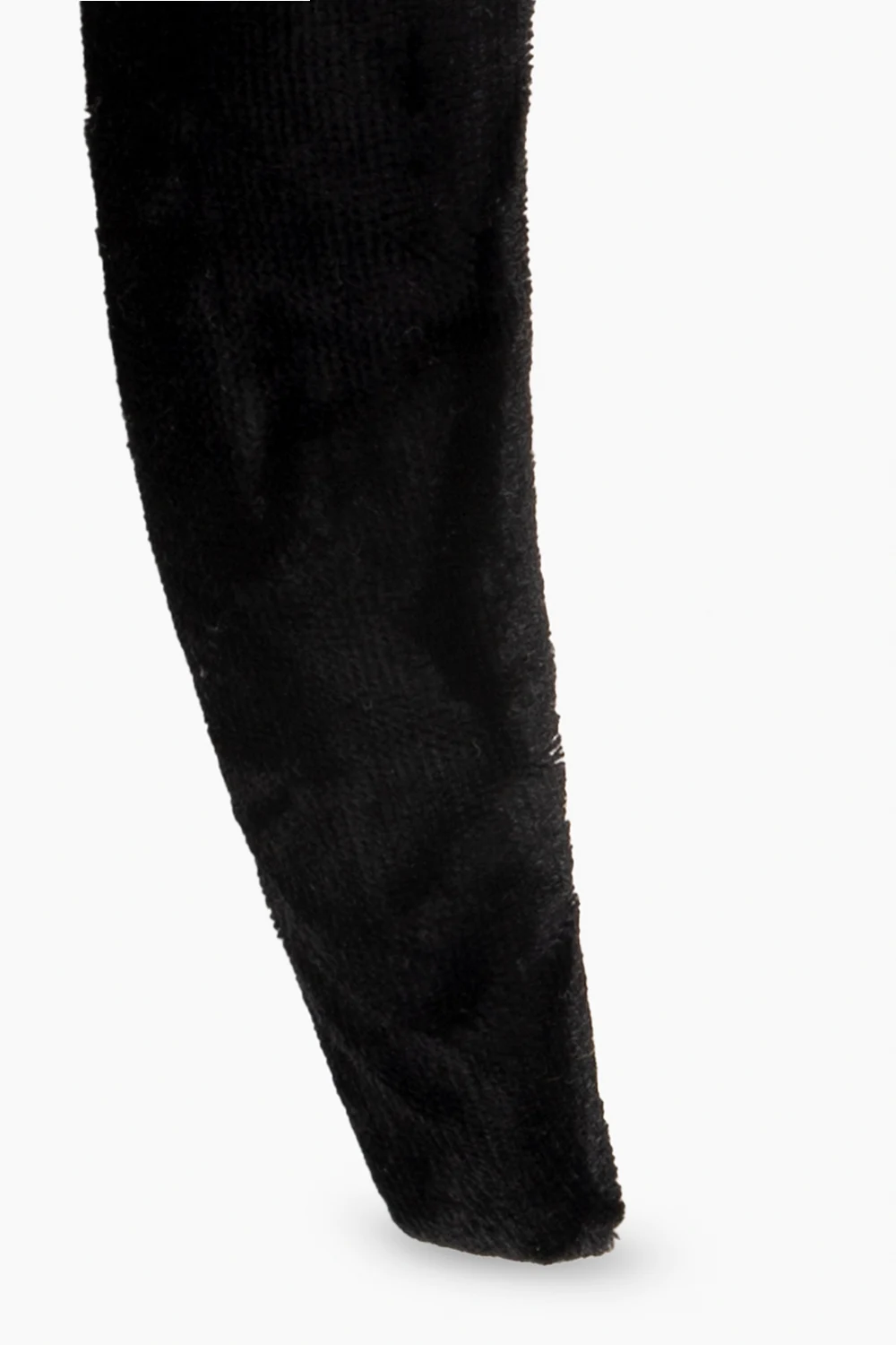 Czarna opaska na głowę Versace. Wykonana z weluru. Ozdobiona aplikacją w kształcie charakterystycznej dla marki głowy Meduzy w kolorze złotym.