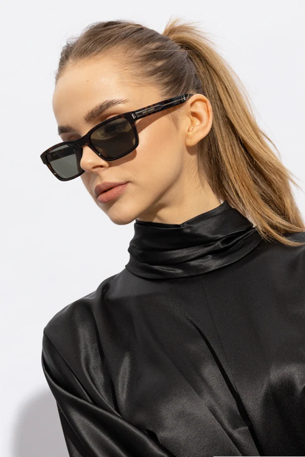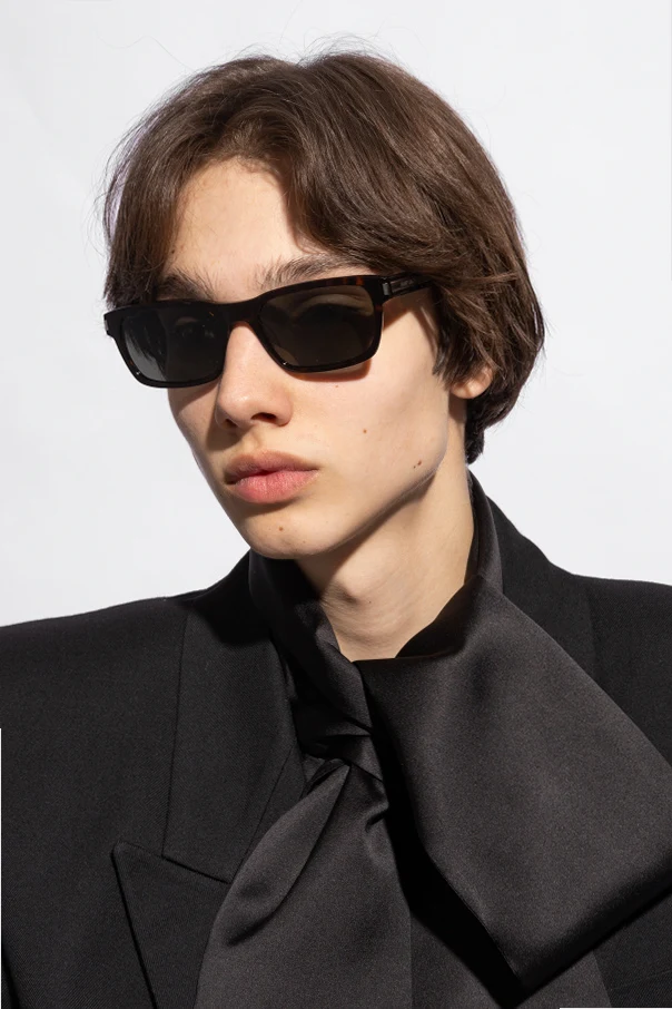 Wyrafinowane detale, w tym zauszniki ozdobione logo Saint Laurent.