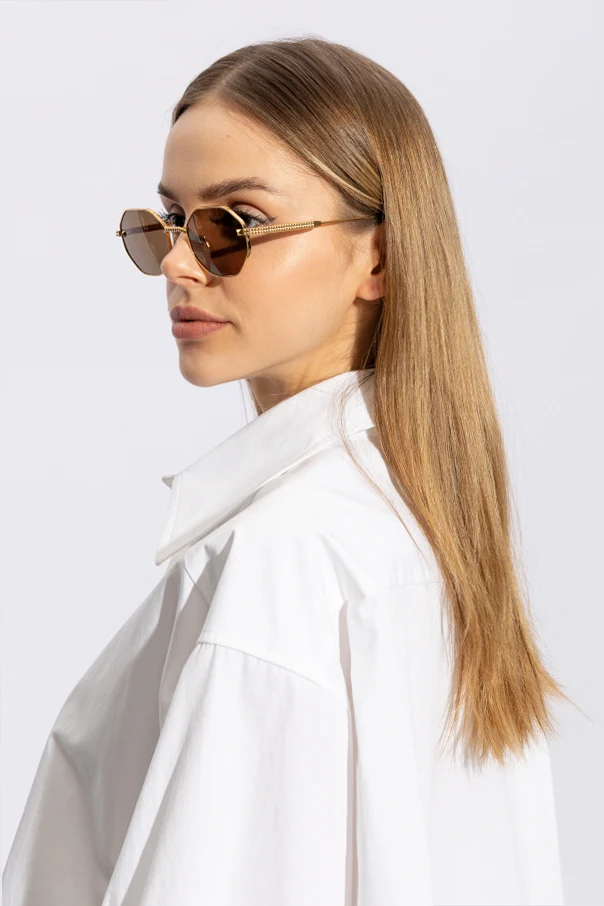 Ich owalne soczewki o lekko zaokrąglonych krawędziach, barwione na elegancki brązowy kolor, nie tylko dodają klasy, ale również oferują 100% ochronę przed szkodliwym promieniowaniem UVA/UVB , dbając o Państwa zdrowie i komfort. Złote oprawki, wraz z delikatnymi zdobieniami na zausznikach, podkreślają ekskluzywny charakter, jednocześnie zachowując subtelność i ponadczasową elegancję.