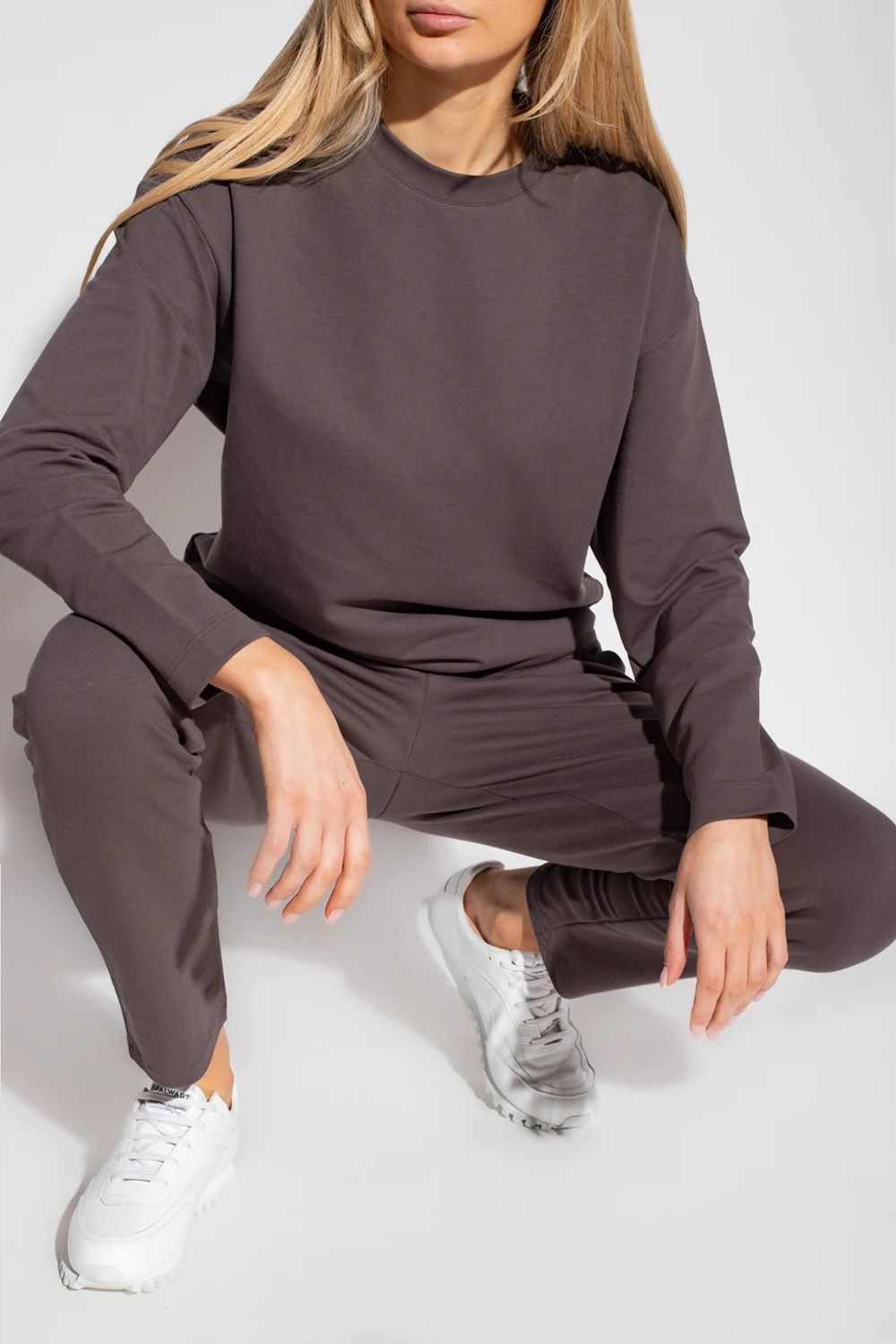 Ciemnoszare spodnie dresowe Hanro. Wykonane z bawełny organicznej. W pasie wszyta guma ściągana trokami. Z przodu dwie wsuwane kieszenie. Nogawki lekko zwężane ku dołowi.