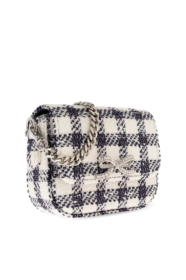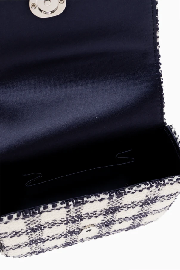 Tweedowa torba na ramię marki Self-Portrait Kids zachwyca wyrafinowaną estetyką i doskonałą proporcją. Mała, prostokątna sylwetka z subtelnie zaokrąglonymi brzegami została harmonijnie ubrana w klasyczną kratę o przewadze odcieni granatowego na kremowym tle, co podkreśla jej ponadczasową elegancję.