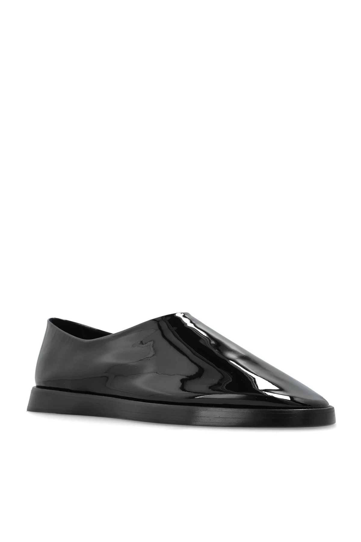 Wykonane z błyszczącej skóry, te buty emanują luksusem i wytwornością. Czarny kolor dodaje im uniwersalności, czyniąc idealnym dopełnieniem zarówno eleganckich, jak i casualowych stylizacji. Nisko osadzona, płaska podeszwa skórzana zapewnia komfort noszenia przez cały dzień.