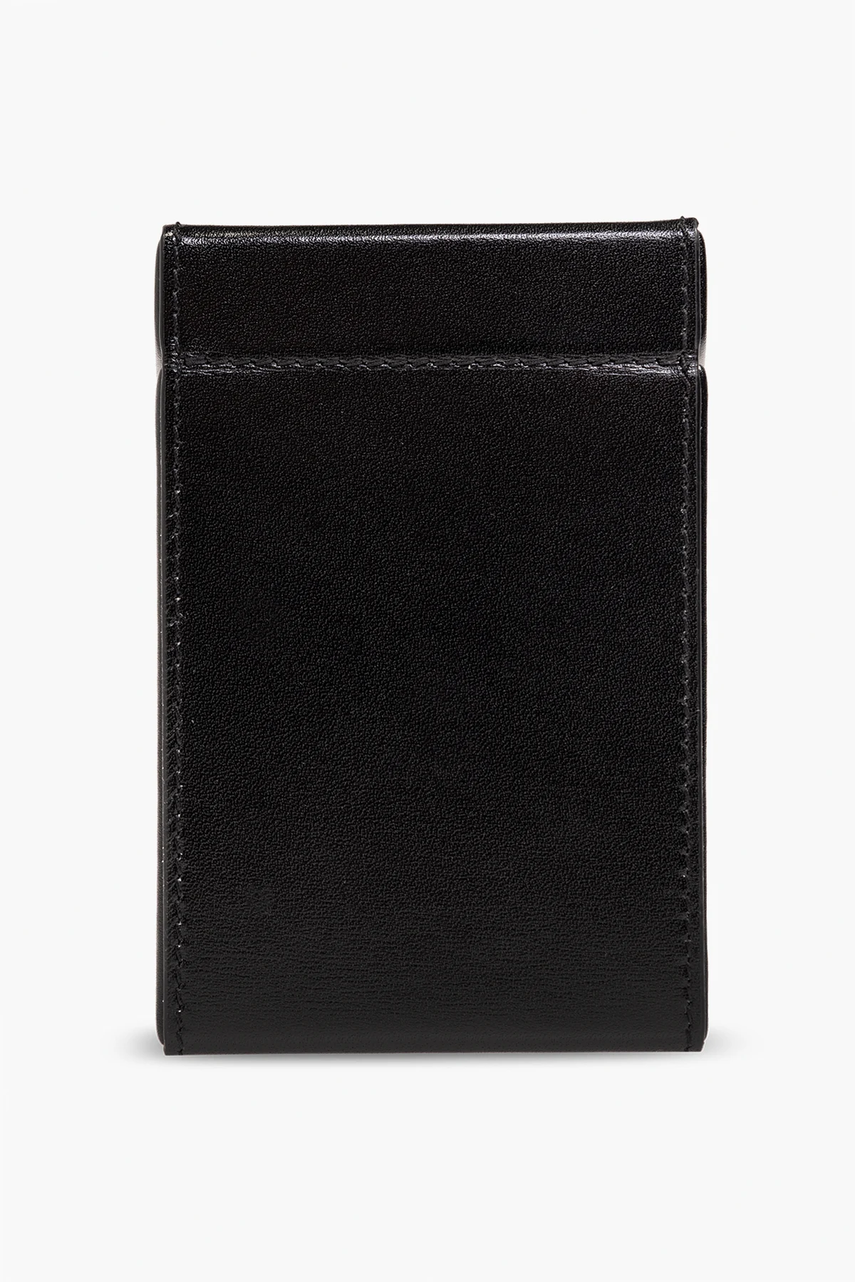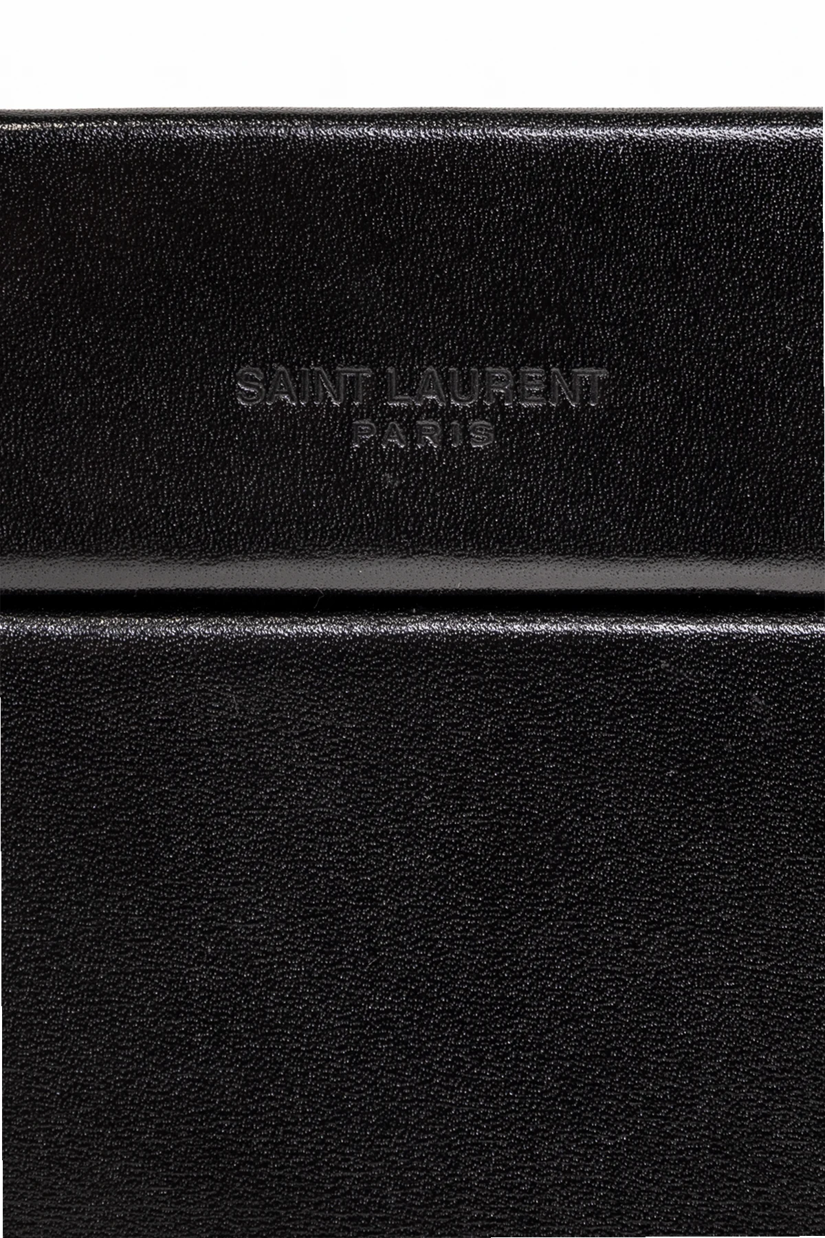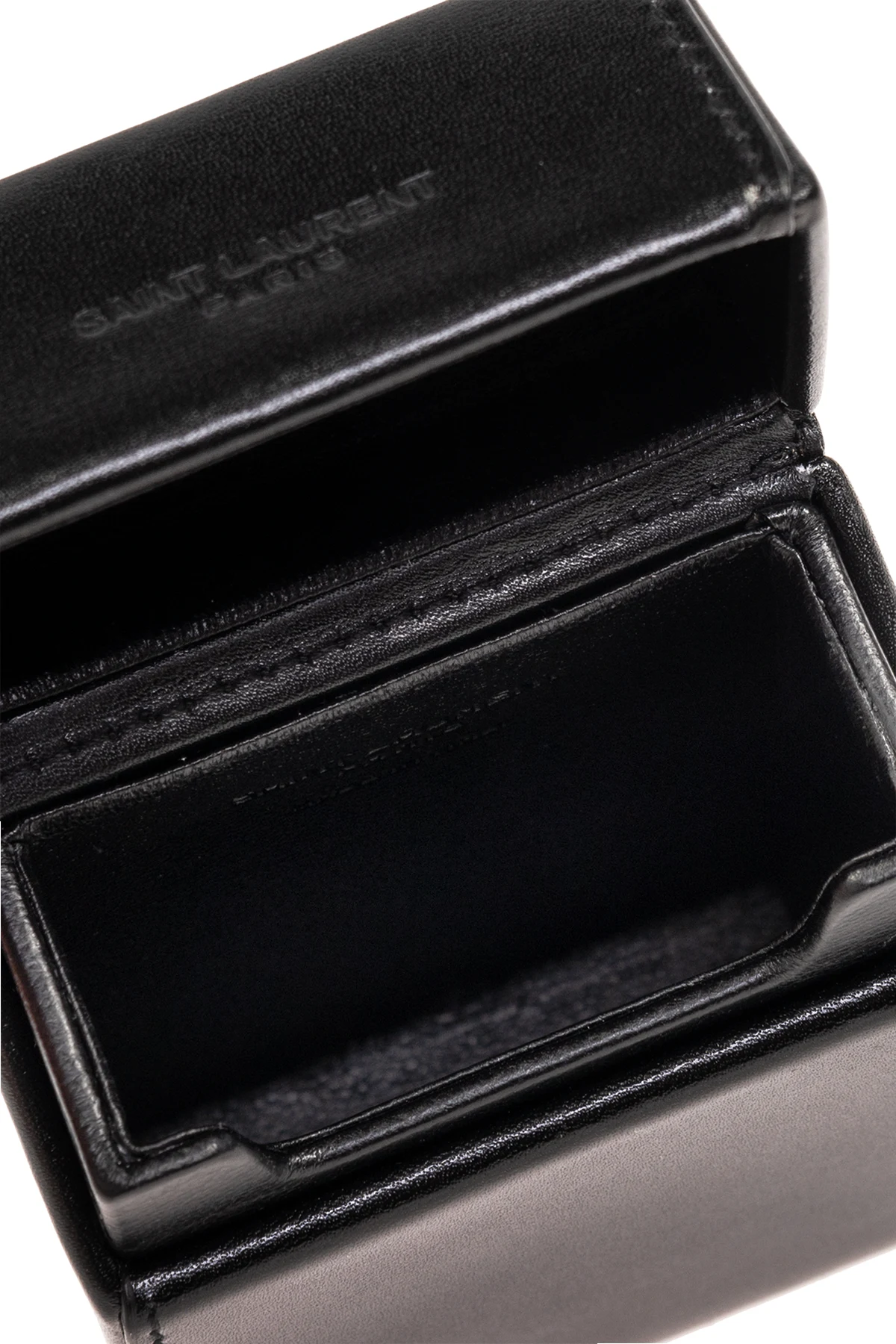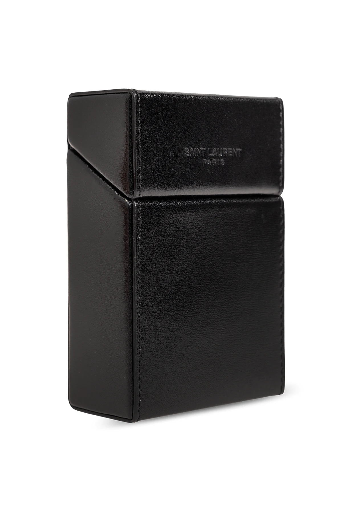 Czarne etui na papierosy Saint Laurent. Wykonane ze skóry cielęcej. Ozdobione wytłoczonym logo. Zamykane na zatrzask. Wewnątrz komora.