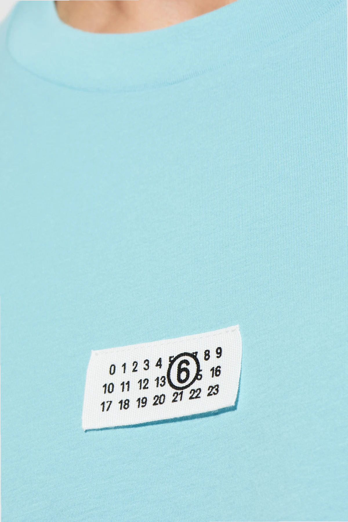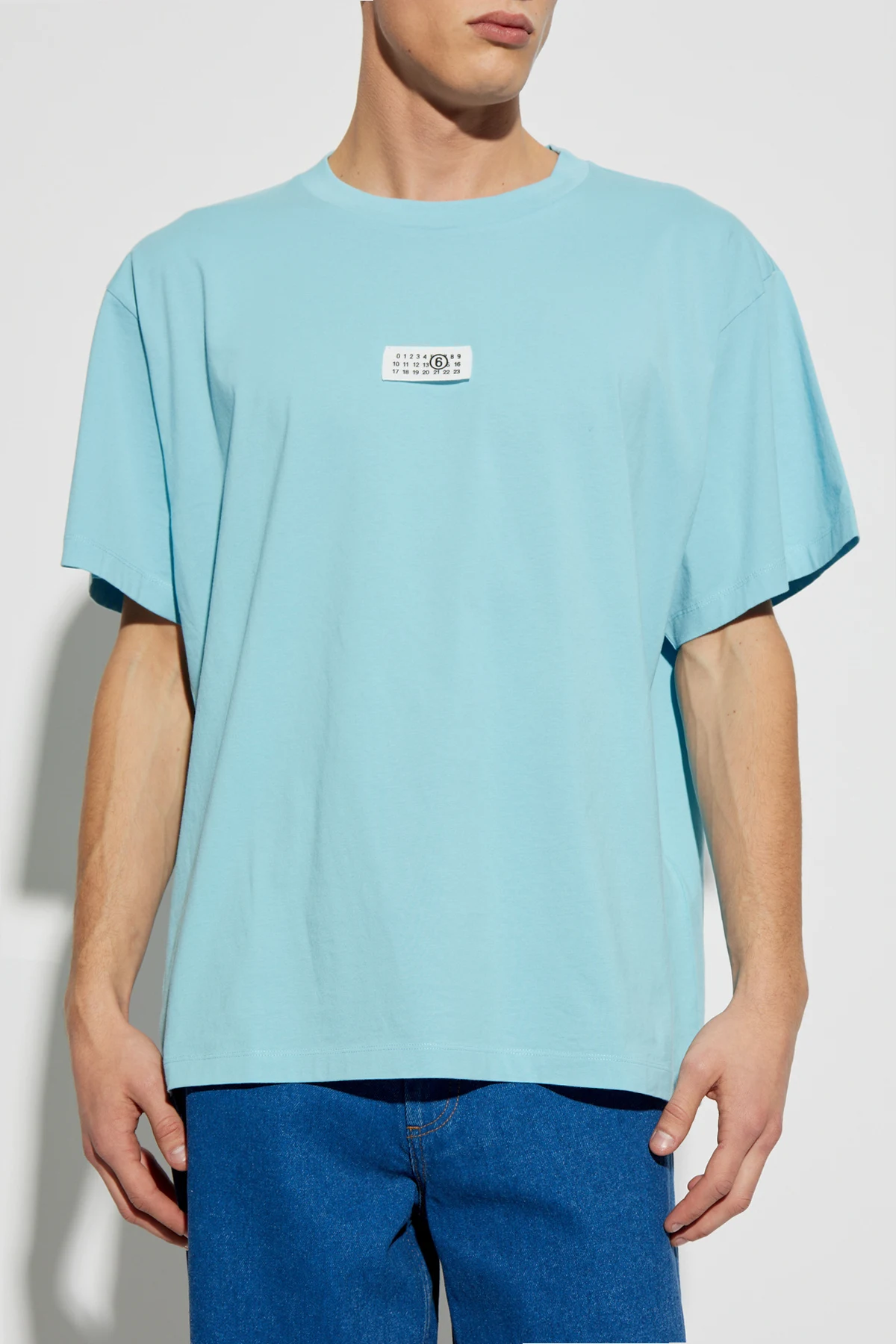Odkryj niezwykłą elegancję w unikalnym t-shircie z naszywką z logo od prestiżowej linii MM6 Maison Margiela . Wykonany w całości z najwyższej jakości bawełny, ten jasnoniebieski t-shirt to kwintesencja komfortu i stylu.