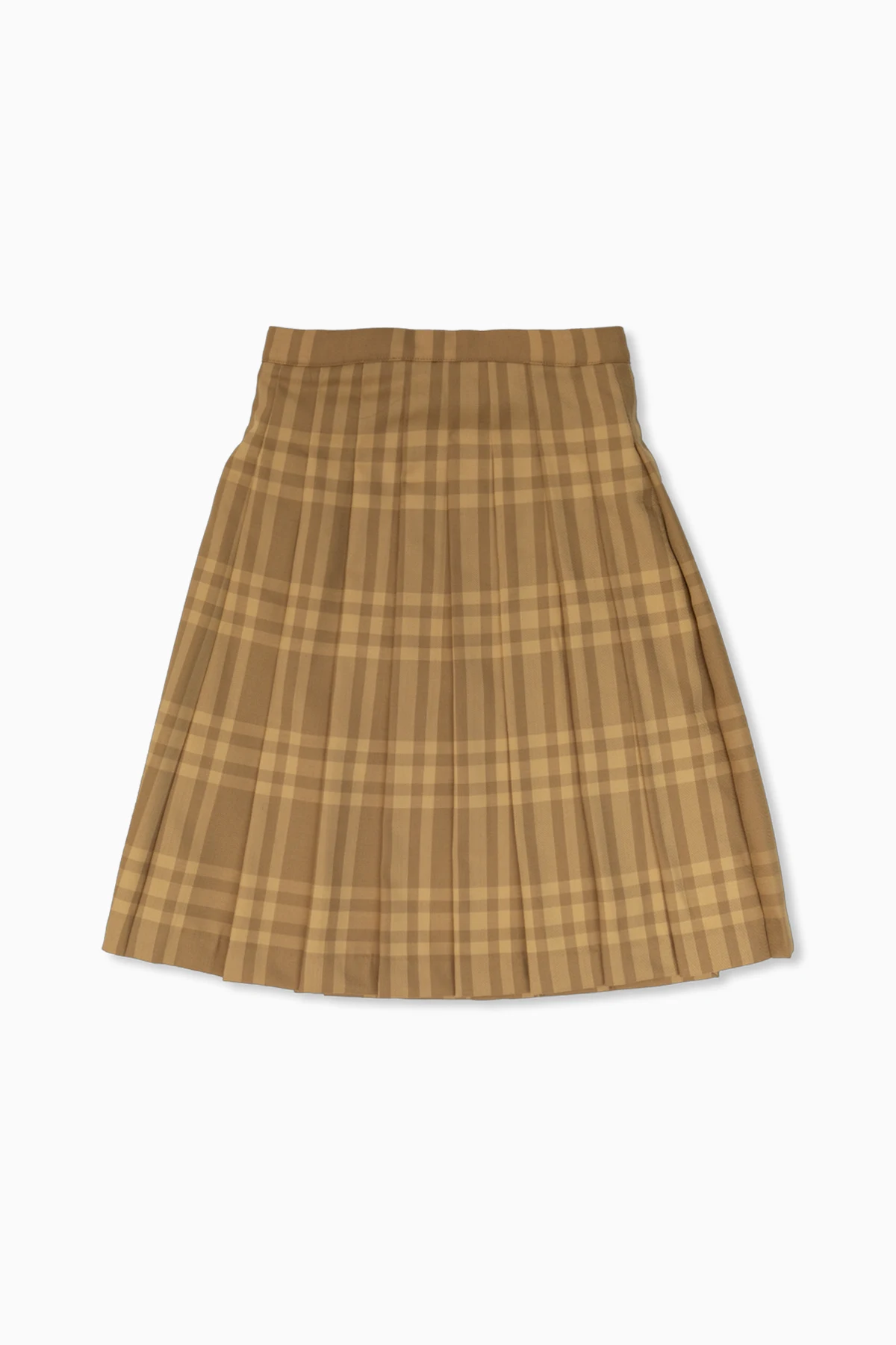 Przedstawiamy plisowaną spódnicę ze wzorem w kratę, będącą kwintesencją elegancji i klasyki. Ta wyjątkowa spódnica, stworzona przez renomowaną markę Burberry Kids , urzeka swym dominującym beżowym kolorem, doskonale wpisującym się w ponadczasowy styl brytyjskiej estetyki.