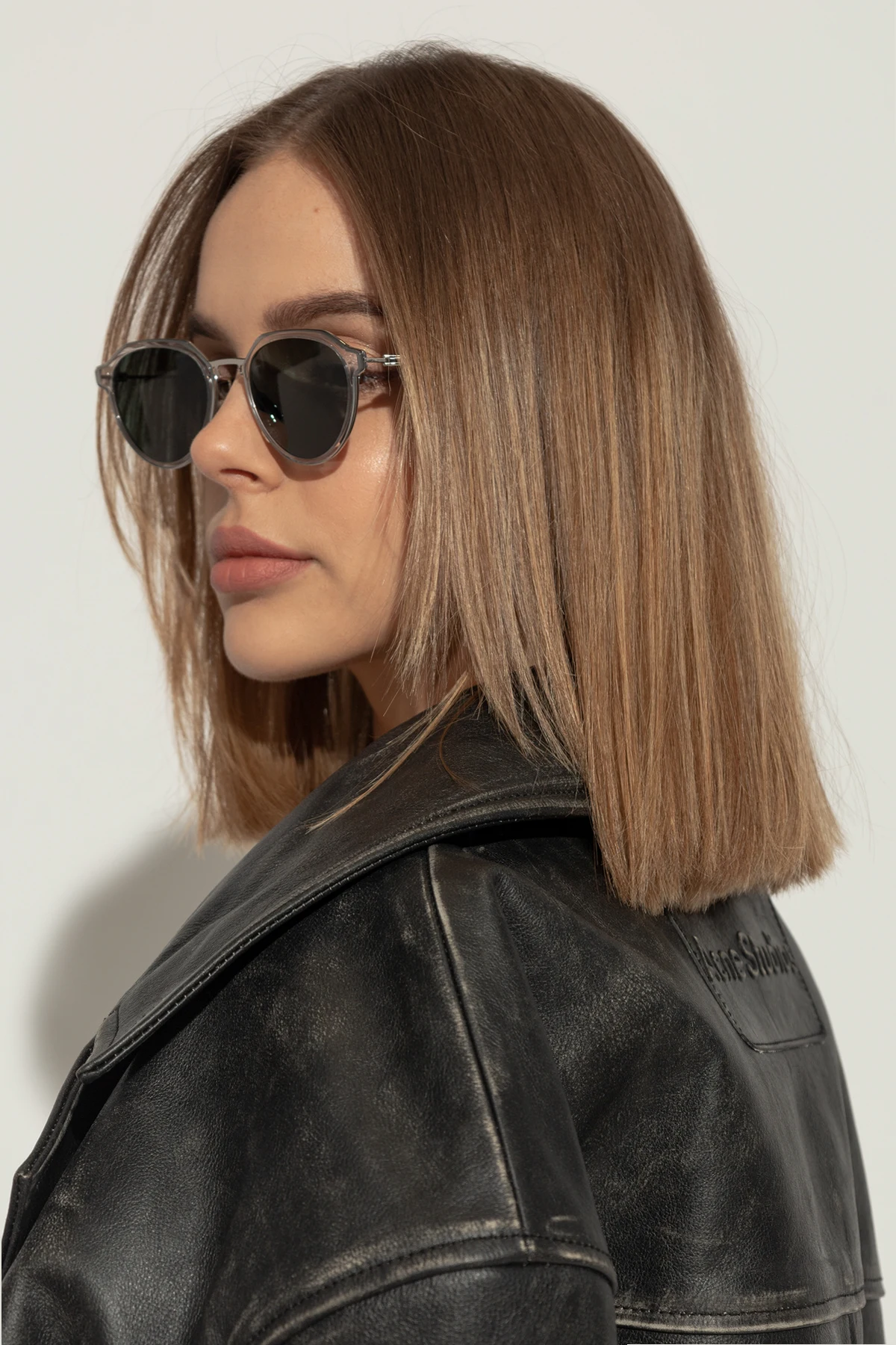 Okrągłe soczewki, lekko zaokrąglone na górze i dolnej krawędzi, oraz cienkie oprawki tworzą harmonijną całość, podkreślającą delikatny i elegancki wygląd. Na zausznikach znajdują się subtelne akcenty, które mogą być logo projektanta, nadające okularom unikalny charakter.