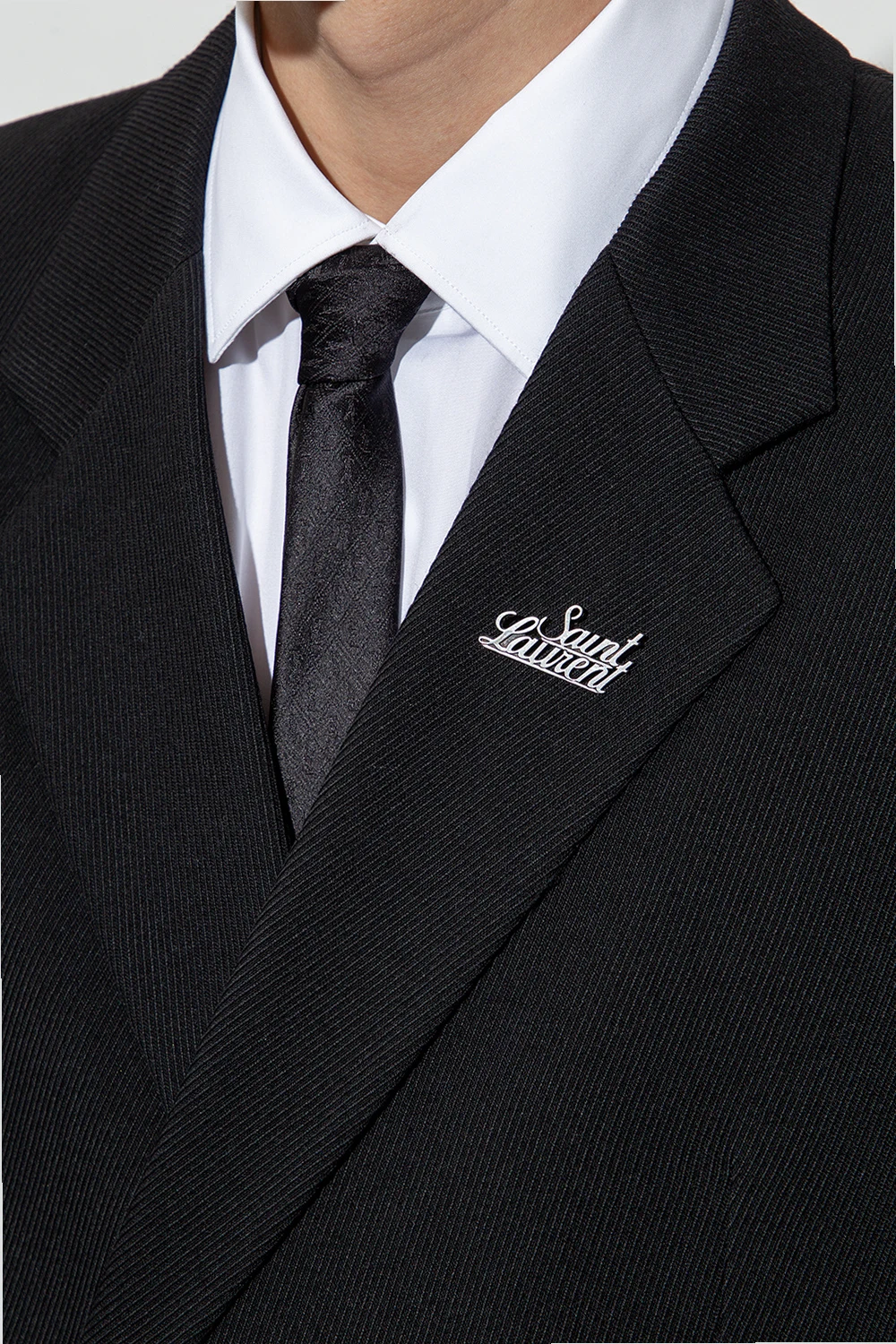 Czarny krawat Saint Laurent. Wykonany z jedwabiu. Ozdobiony monogramem z logo.