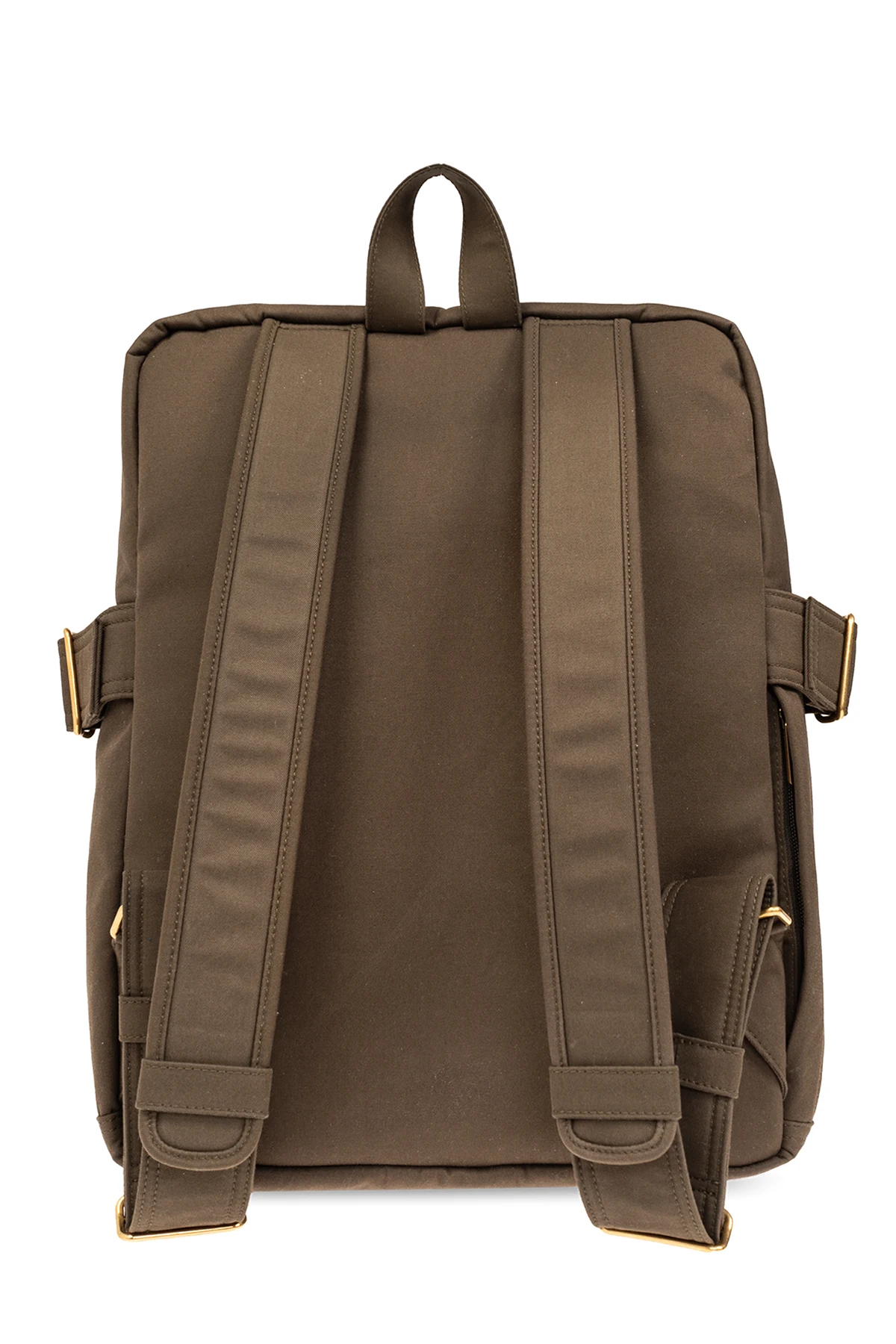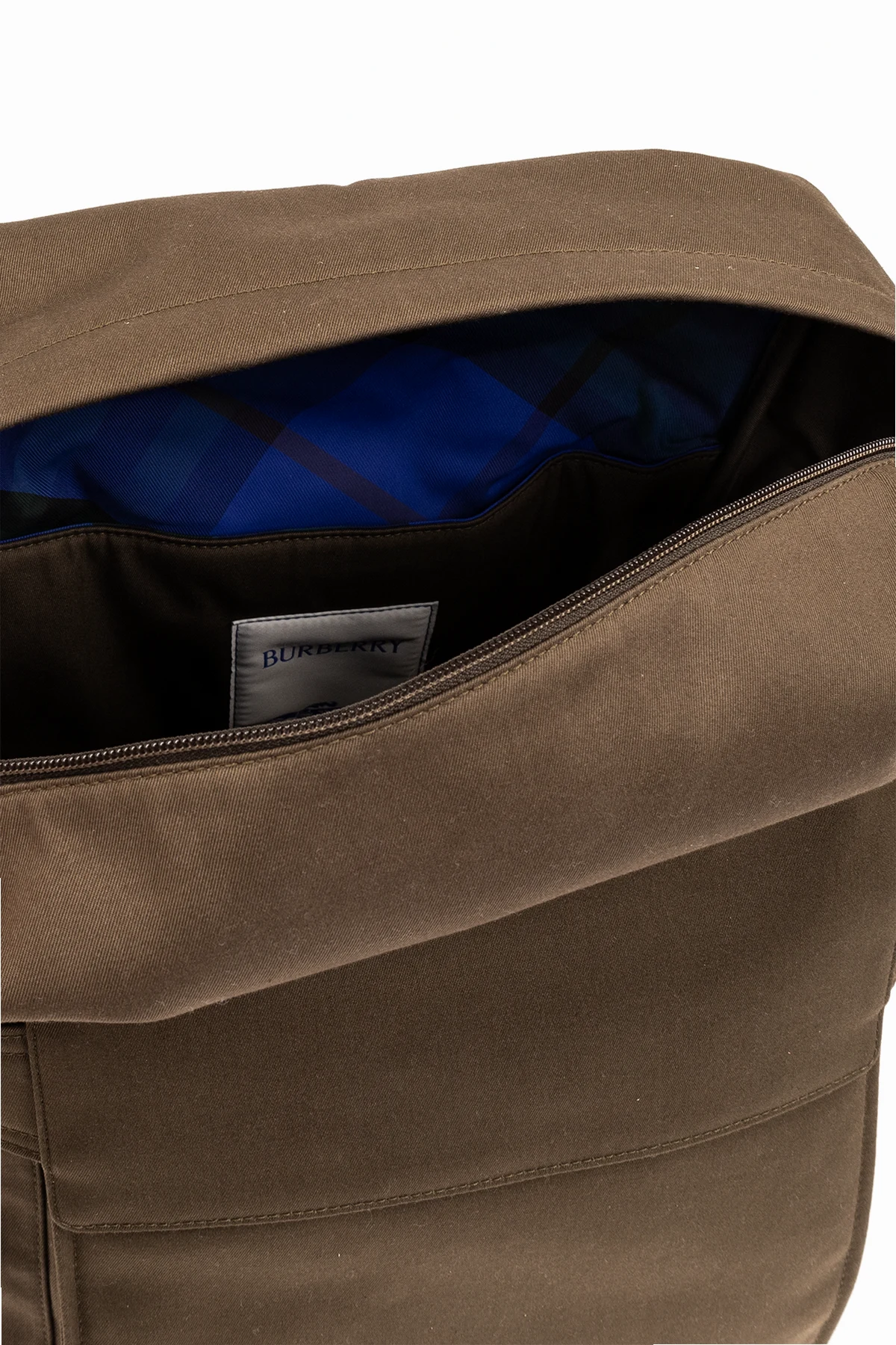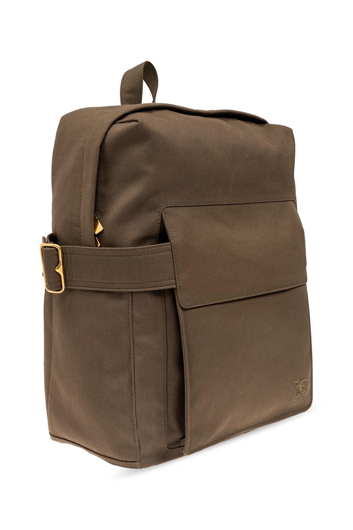 Plecak w kolorze khaki Burberry. Wykonany z mieszanki materiałów. Zamykany na dwubiegunowy zamek. Ozdobiony haftem ‘Equestrian Knight’. Z przodu kieszeń z zapięciem na rzep. Szelki z możliwością regulacji długości. Wewnątrz komora oraz wsuwana kieszeń. Metalowe wykończenie w kolorze złotym.