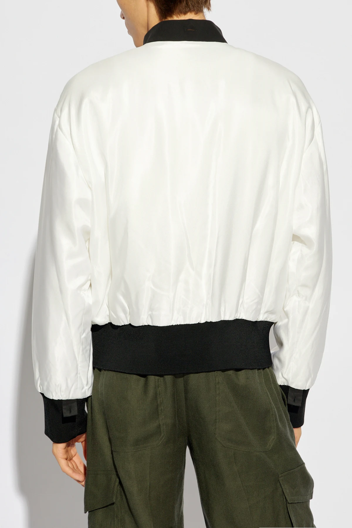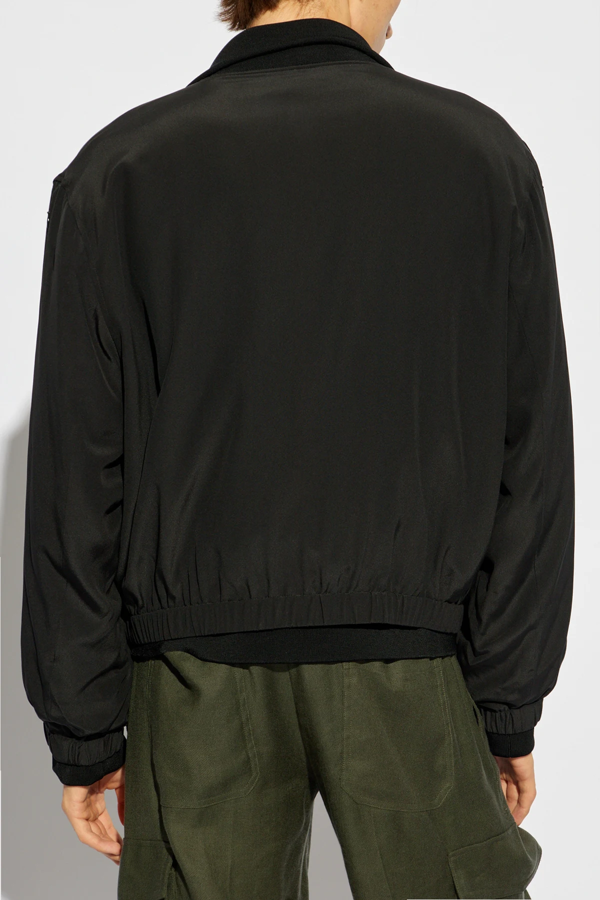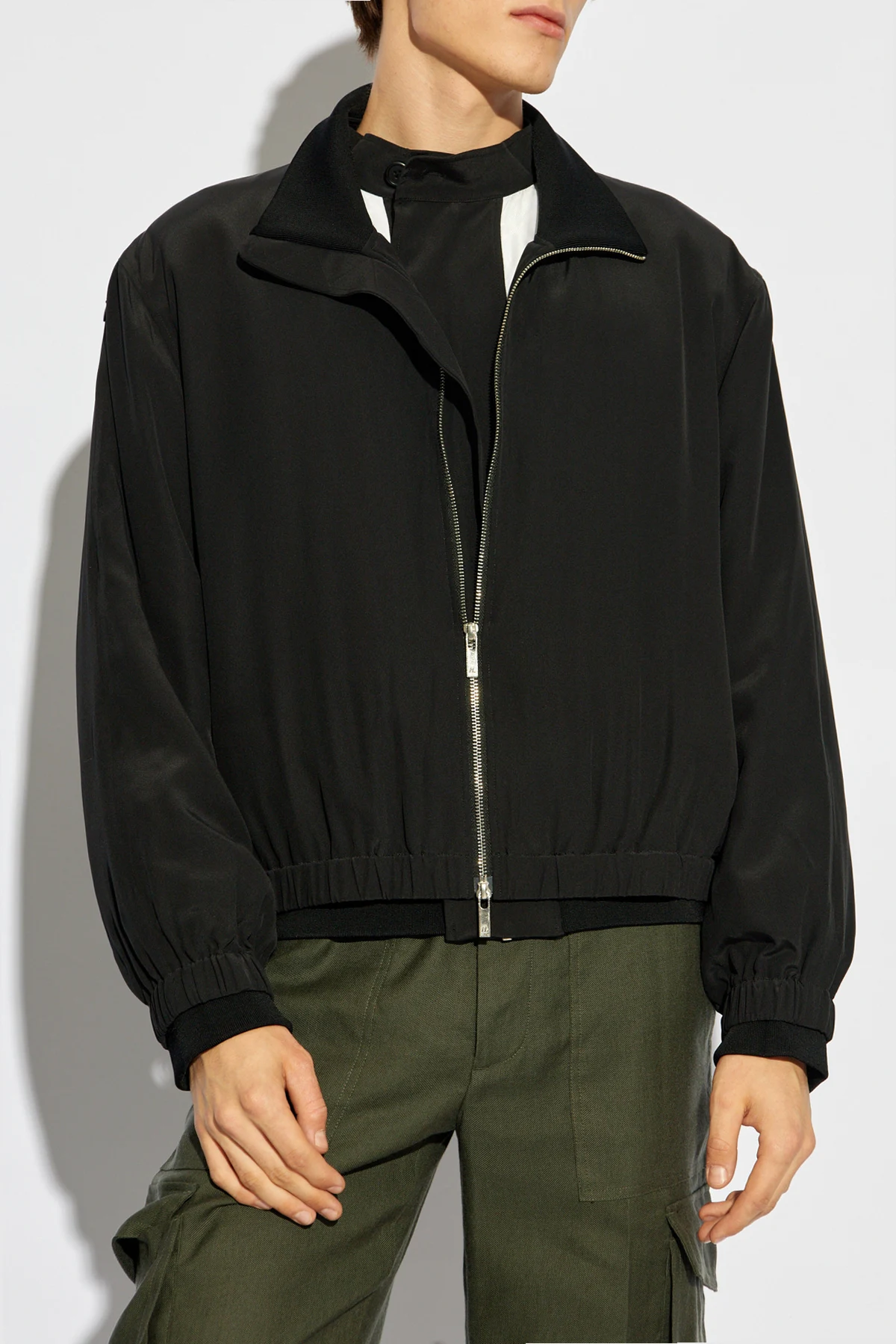 Charakterystyczne dla modelu "bomber" ściągacze na dole oraz końcach rękawów zapewniają doskonałe dopasowanie, jednocześnie izolując przed niekorzystnymi warunkami atmosferycznymi. Stójkowy kołnierzyk oraz srebrny, metalowy zamek błyskawiczny na całej długości przedniej części dodają kurtce wyrazistości, stanowiąc elegancki kontrast dla głębokiej czerni materiału.
