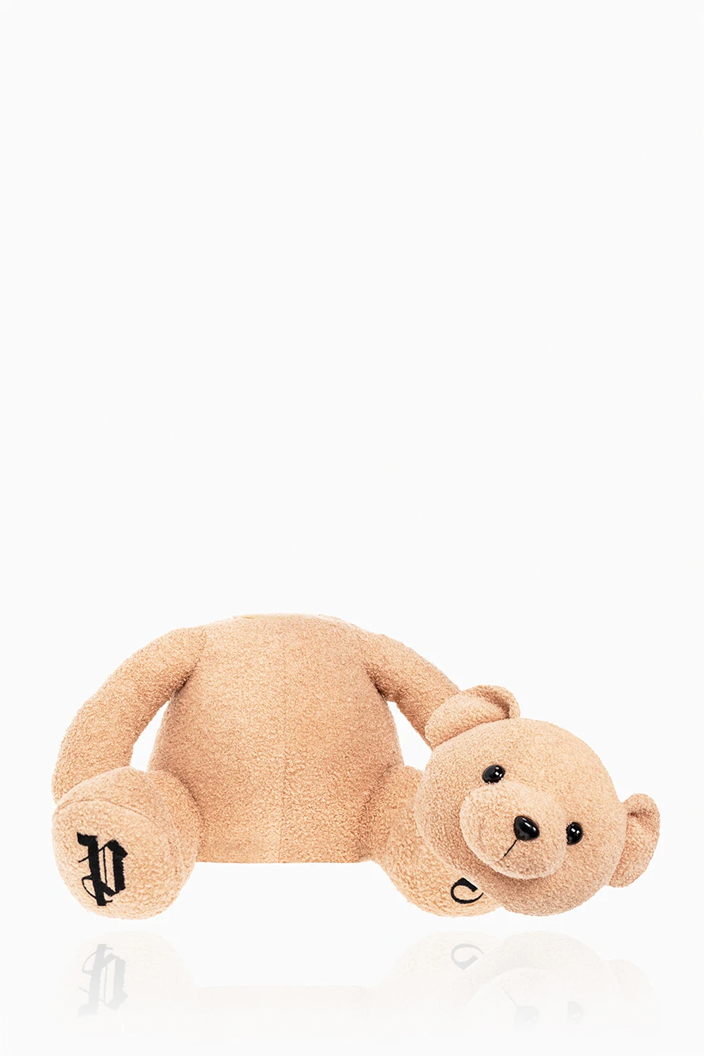 Beżowa maskotka w kształcie charakterystycznego misia Palm Angels. Ozdobiona wyszytym logo. Głowa odpinana na rzep.