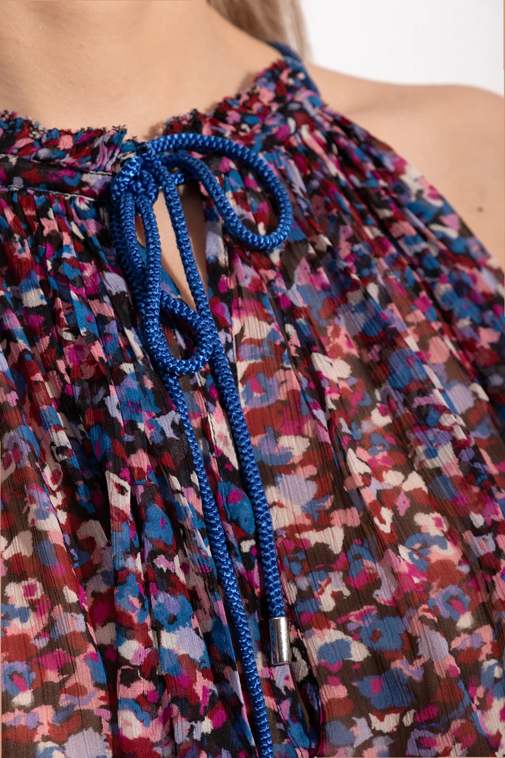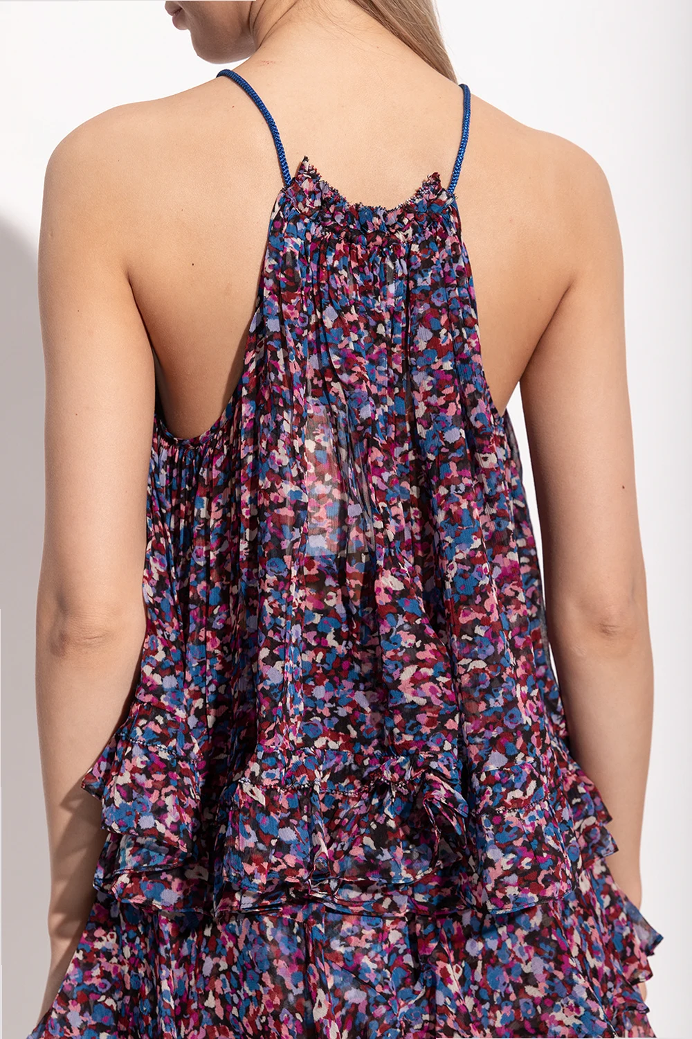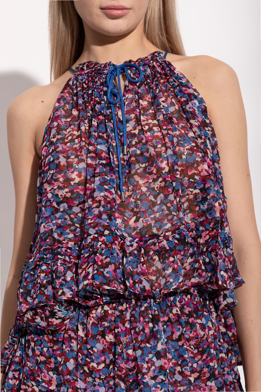 Kolorowy top o luźnym kroju, model ‘Fabino’ Marant Étoile. Odkryte ramiona. Okrągły dekolt ściągany trokami.