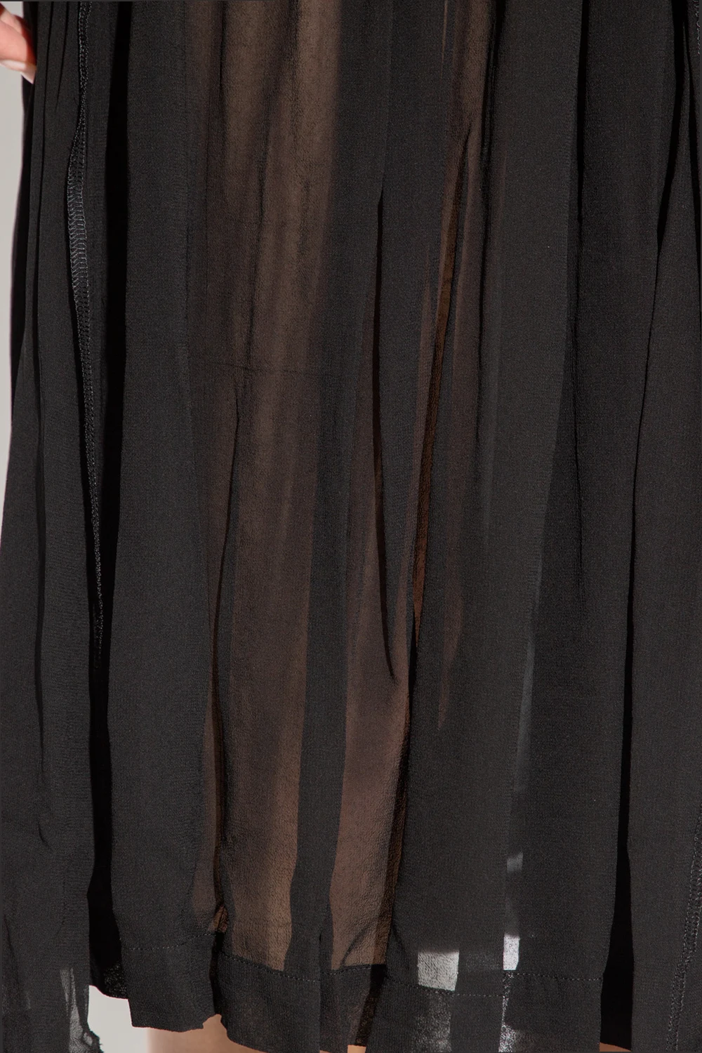 – Czarna bluzka z przezroczystej koronki z falbaną na górze i przy mankietach