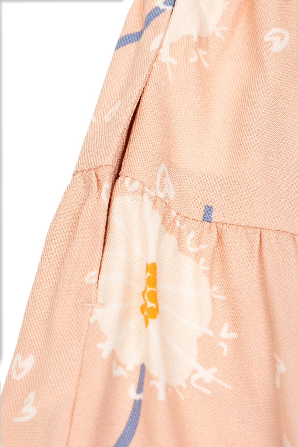 Rozkloszowany fason z delikatnymi falbanami podkreślający dziewczęcy urok.