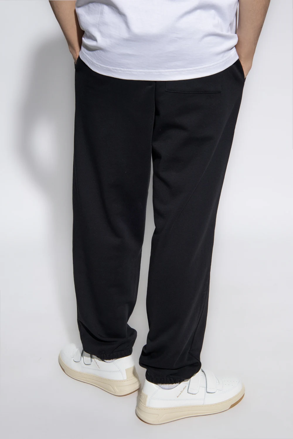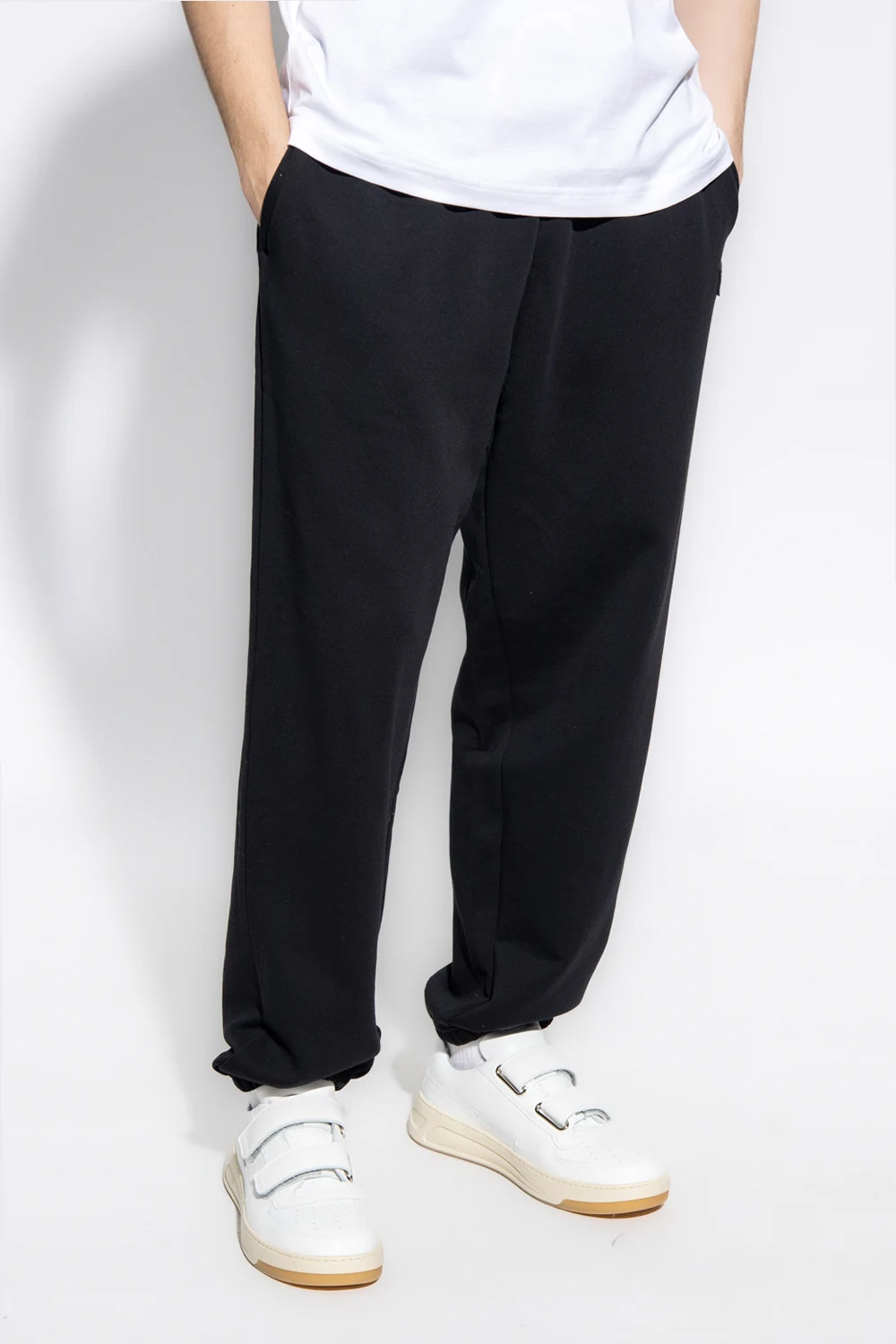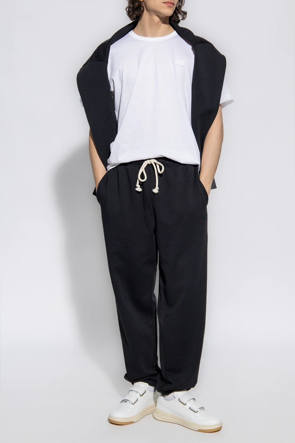 Czarne spodnie dresowe Acne Studios. Wykonane z bawełny. W pasie wszyta guma ściągana trokami. Ozdobione naszywką z logo. Trzy kieszenie wsuwane. Nogawki zakończone ściągaczem.