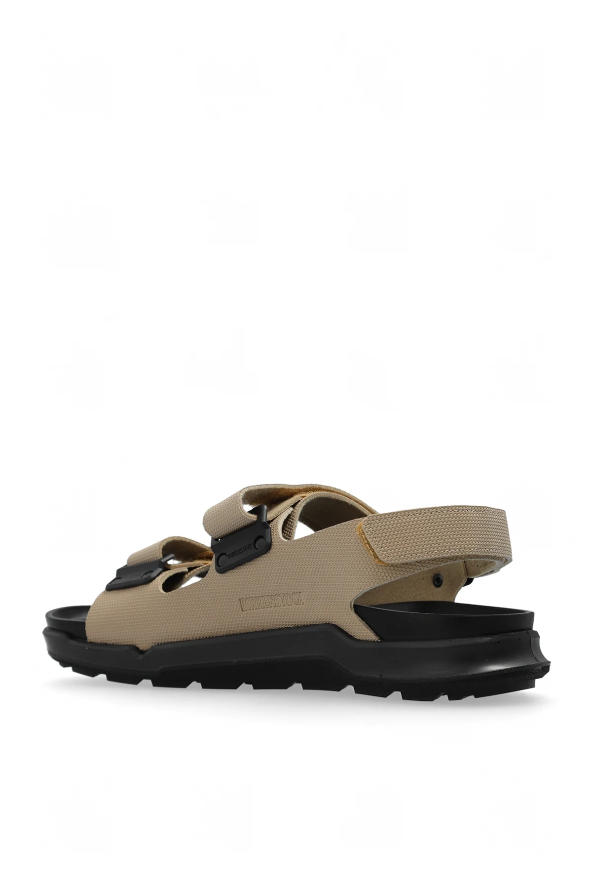 Beżowe sandały, model ‘Tatacoa’ Birkenstock Kids. Wykonane z Birko-Flor®. Zapinane na regulowane paski z rzepem. Ozdobione wytłoczonym logo. Anatomicznie ukształtowana, wodoszczelna wkładka o standardowej szerokości z ochroną palców oraz funkcjonalna podeszwa w kolorze czarnym przylegająca do wkładki i cholewki w postaci dwuwarstwowej pianki – odznacza się szczególną elastycznością oraz wysoką trwałością na niemal każdym rodzaju podłoża.