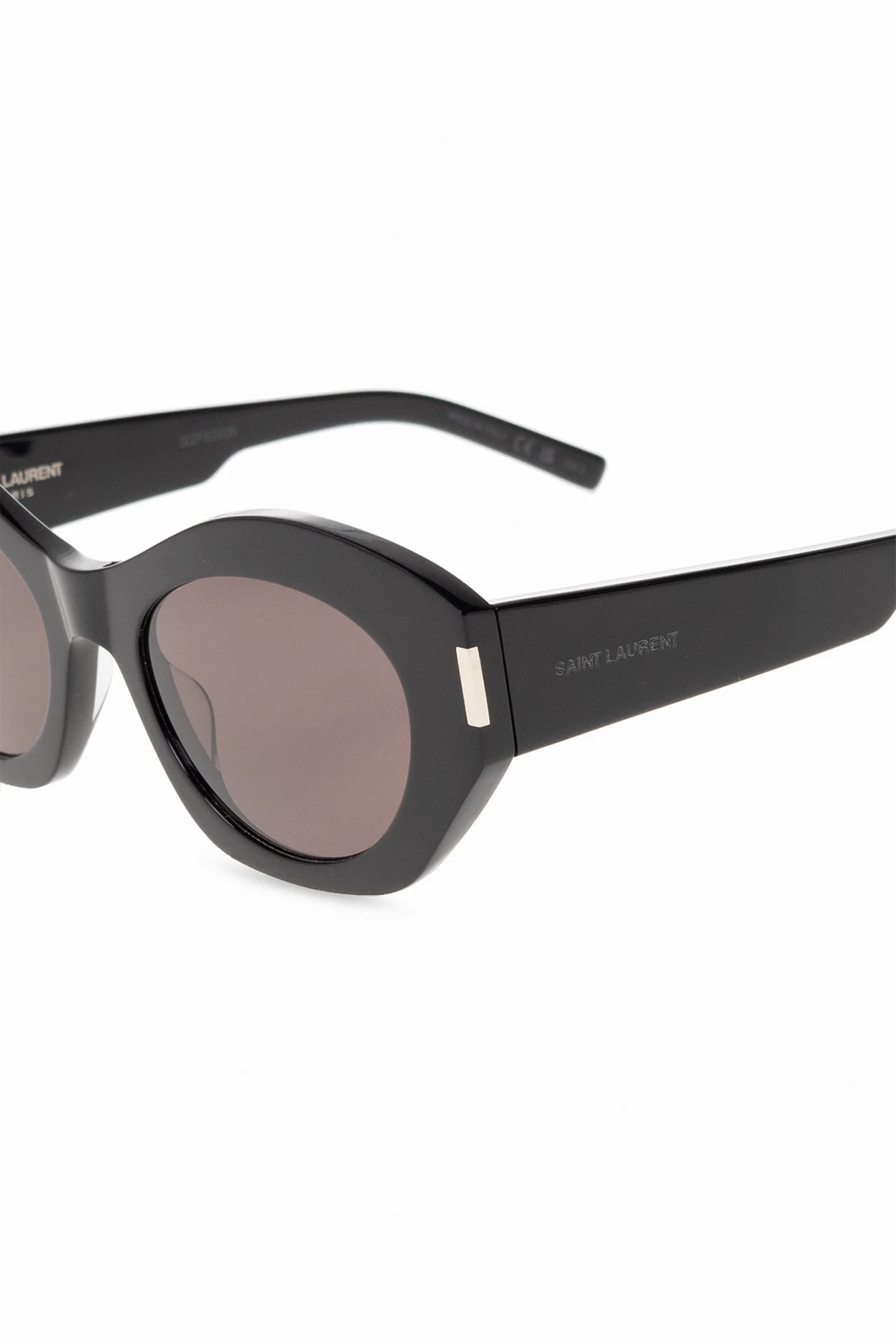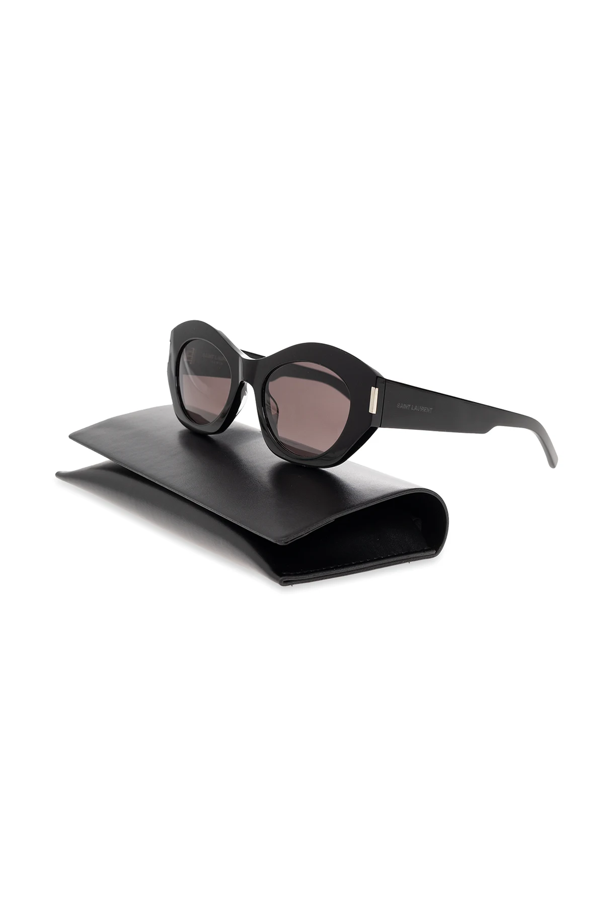 Czarne okulary przeciwsłoneczne, model ‘SL639’ Saint Laurent. Oprawki ozdobione wygrawerowanym logo. Metalowe detale w kolorze srebrnym. Czarne, nylonowe soczewki ze 100% ochroną przed promieniowaniem UV. Dołączone etui.