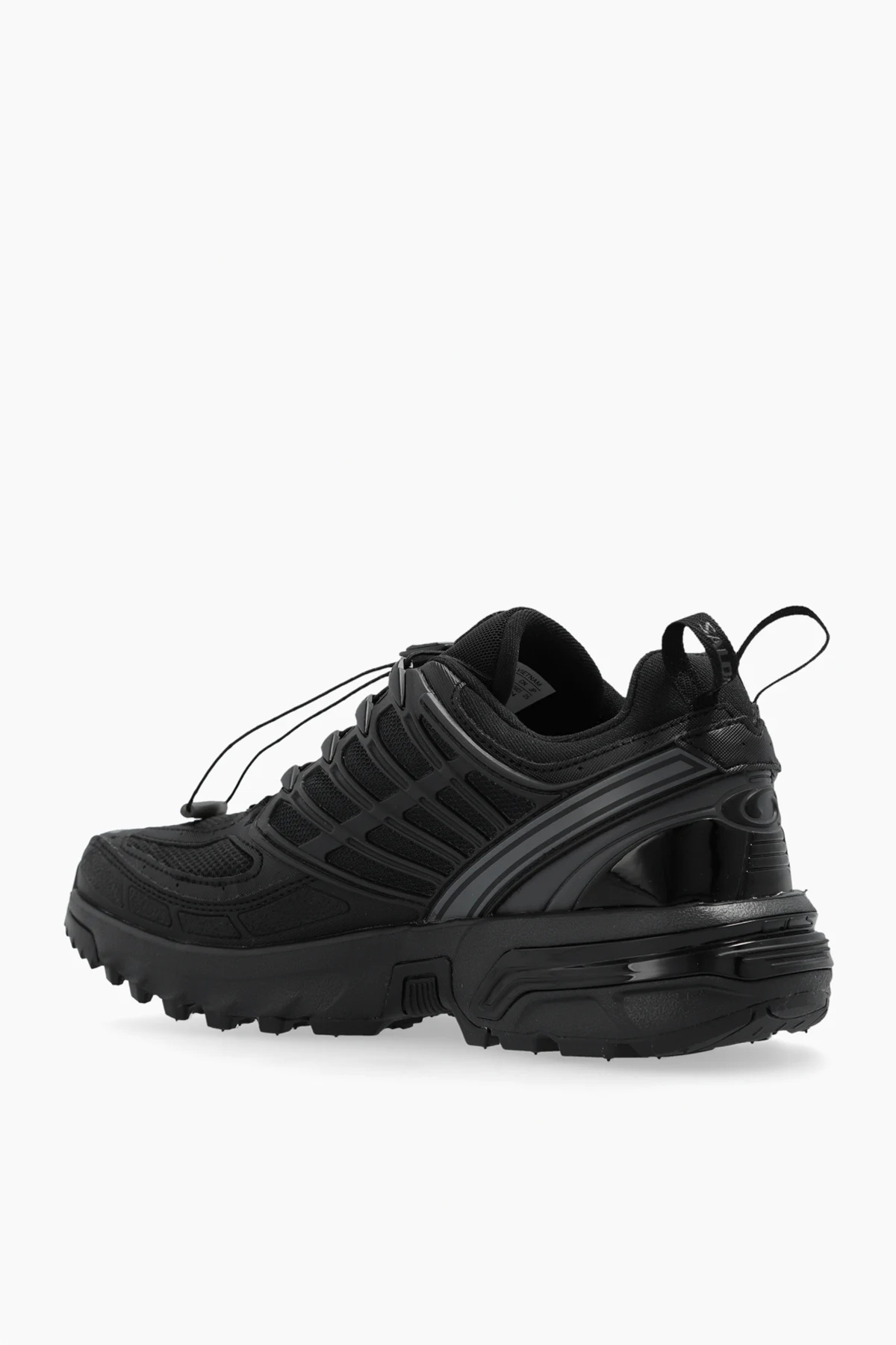 Na boku buta widnieje charakterystyczne logo Salomon, podkreślające prestiż marki. System szybkiego sznurowania ułatwia zakładanie i zdejmowanie butów, a wzmocnienia w strategicznych miejscach, takich jak pięta i przód, zapewniają dodatkową ochronę i trwałość.