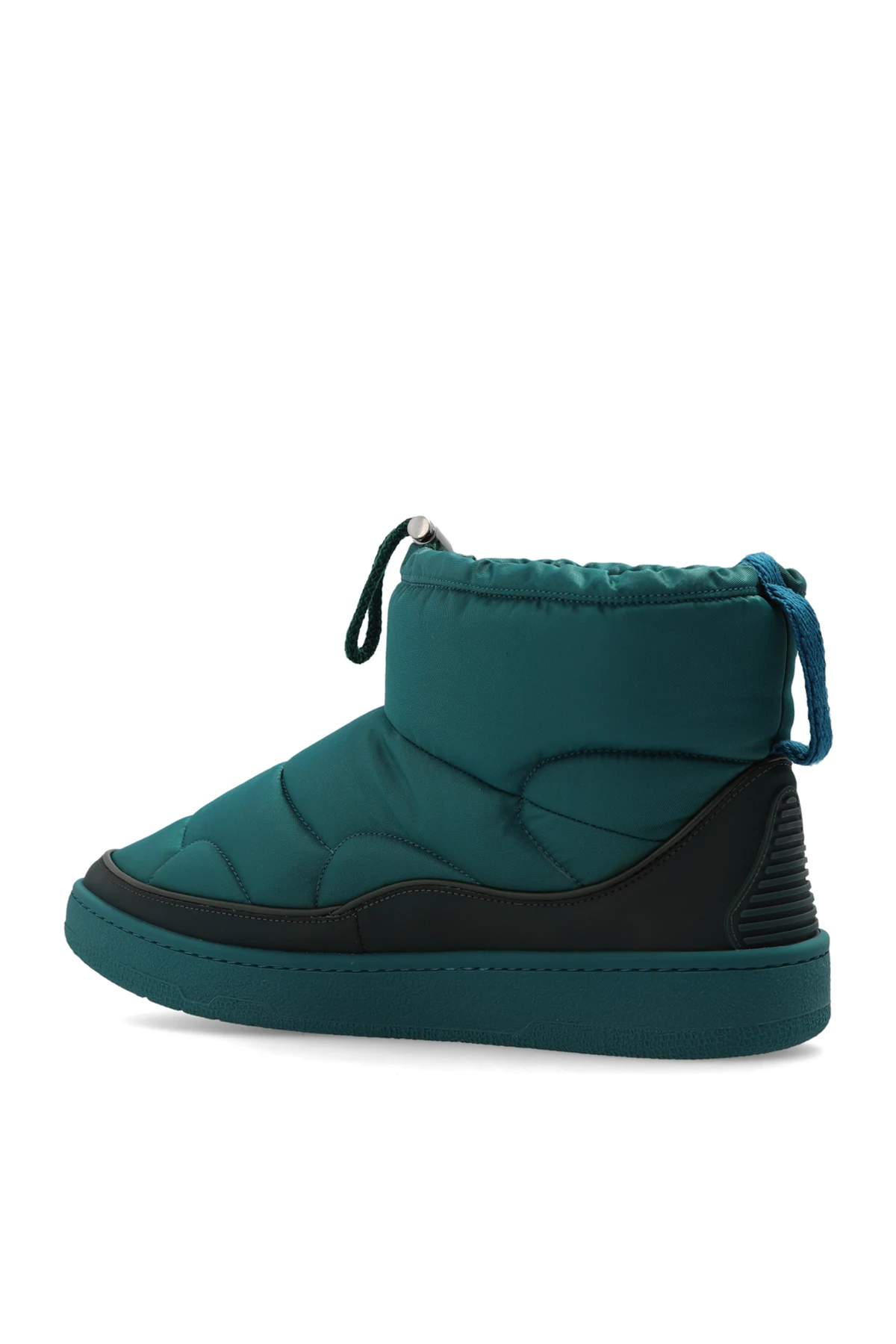 Zielono-niebieskie śniegowce, model ‘Curb Snow’ Lanvin. Wykonane z materiału wykończonego gumą. Ściągane trokami. Ozdobione logo. Podeszwa wykonana z gumy w kolorze niebiesko-zielonym.