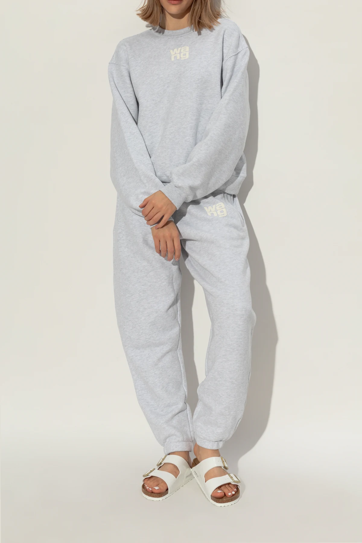 – Szarobeżowe klapki z korkową podeszwą