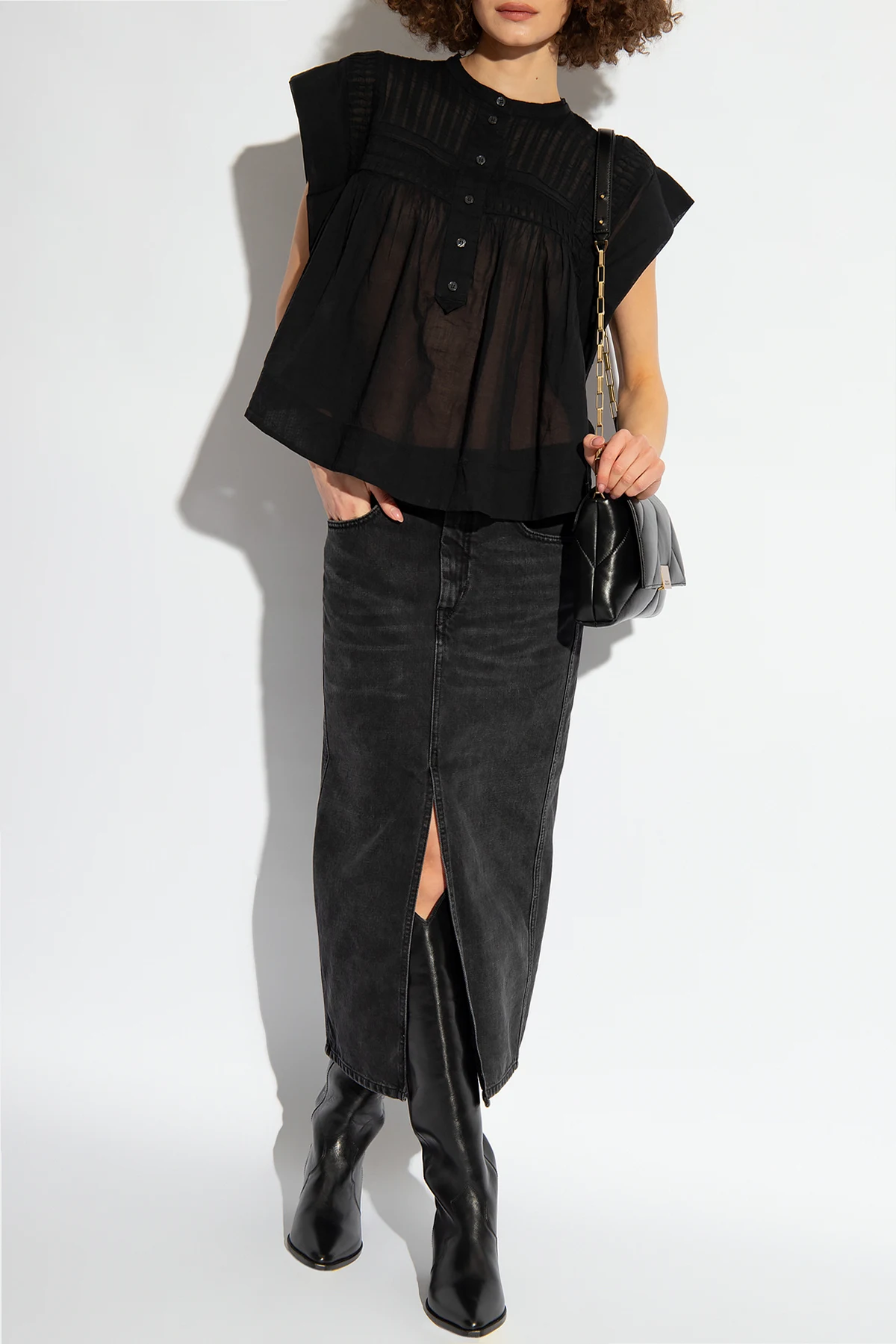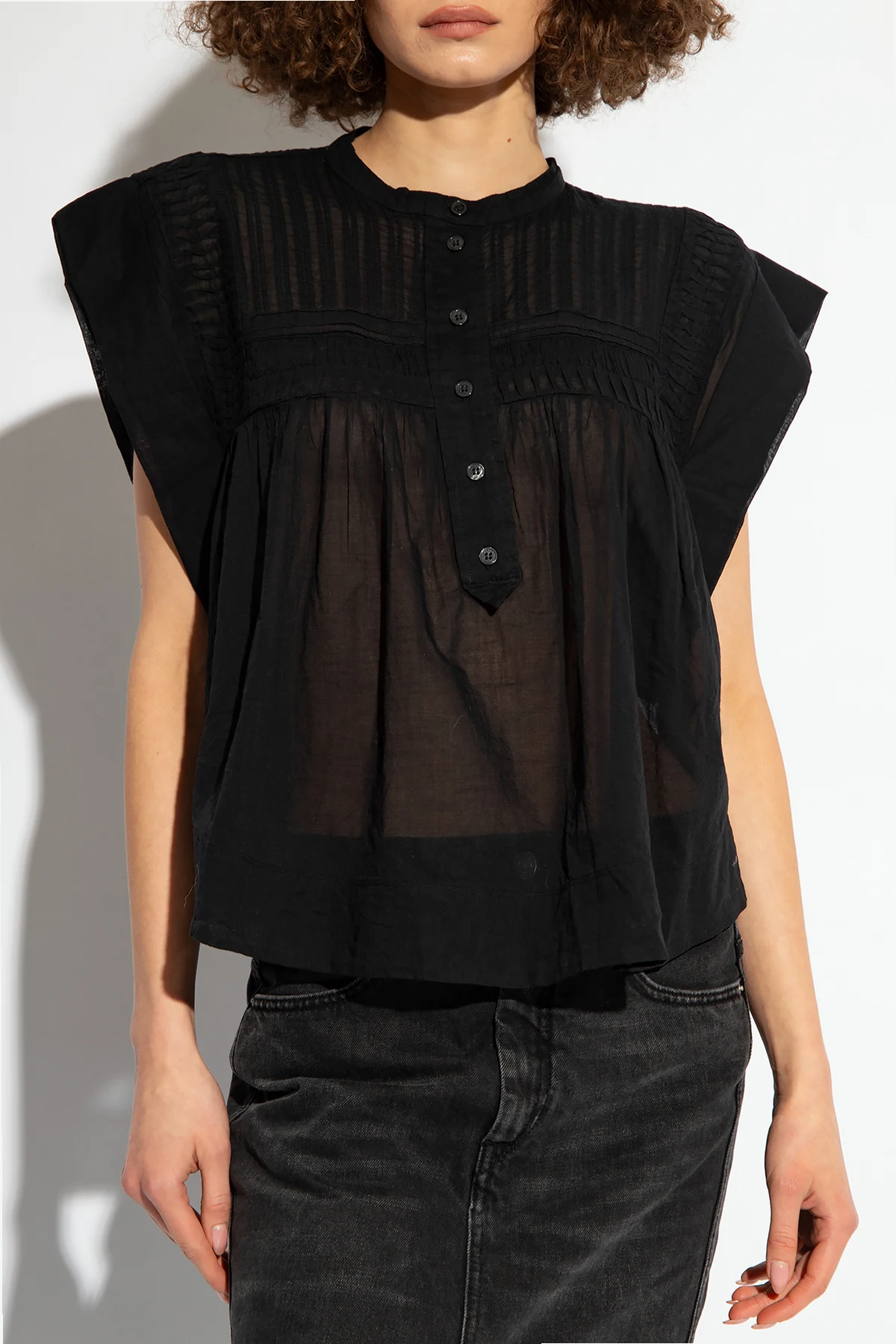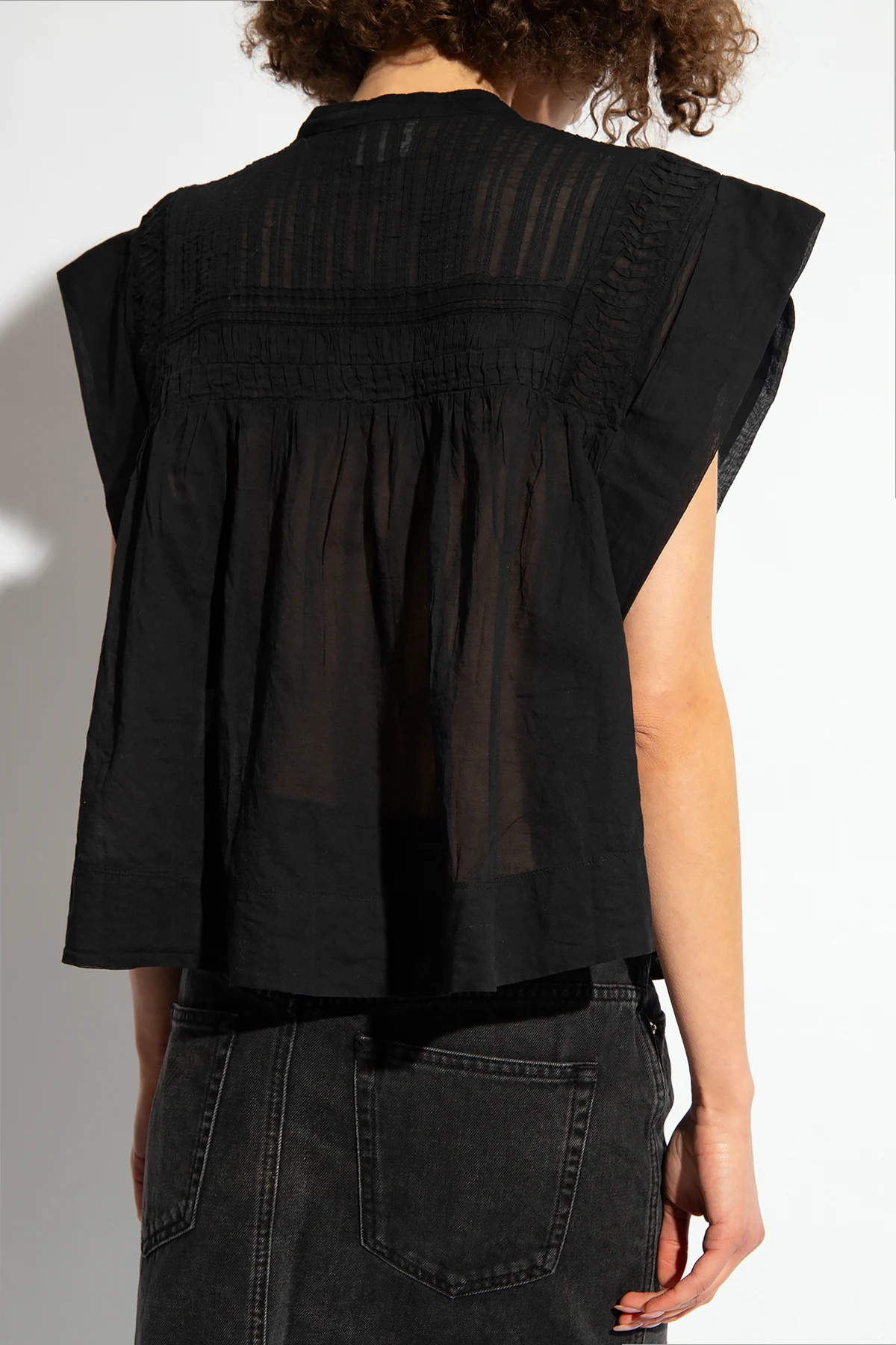 Czarny top bez rękawów, model ‘Leaza’ Isabel Marant. Luźny krój. Wykonany z bawełny. Okrągły dekolt zapinany na guziki. Dekoracyjne przeszycia.